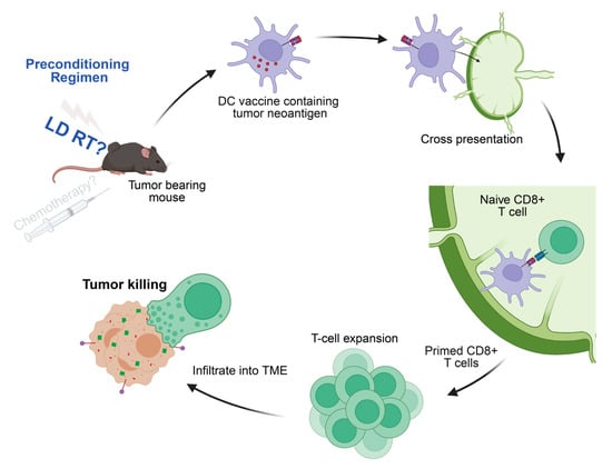In contrast to CAR T cell therapy, preconditioning regimens are not routinely incorporated into clinical trials of cancer vaccines, despite the mechanistic rationale and potential for similar immunomodulatory benefits. Early-phase clinical studies of DC and other cancer vaccines have demonstrated the capacity to increase antitumor T cell responses [12,13,14], but have not yet been translated into clear survival benefits. This discrepancy may partly reflect the absence of intentional preconditioning strategies that could potentiate vaccine-induced immunity by overcoming tumor-mediated immune suppression or enhancing T cell priming and expansion.