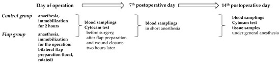 - Magyar, Z.; Molnar, A.; Nachmias, D.B.; Mann, D.; Sogor, V.; Mester, A.; Peto, K.; Nemeth, N. Impact of groin flap ischemia-reperfusion on red blood cell micro-rheological parameters in a follow-up study on rats. Clin. Hemorheol. Microcirc. 2021, 79, 245–255. [Google Scholar] [CrossRef]