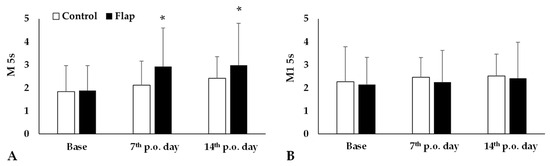 | Flap | 9.95 ± 4.1 | 12.78 ± 2.9 * (35.7%) | 15.65 ± 3.5 * (84.9%) | |