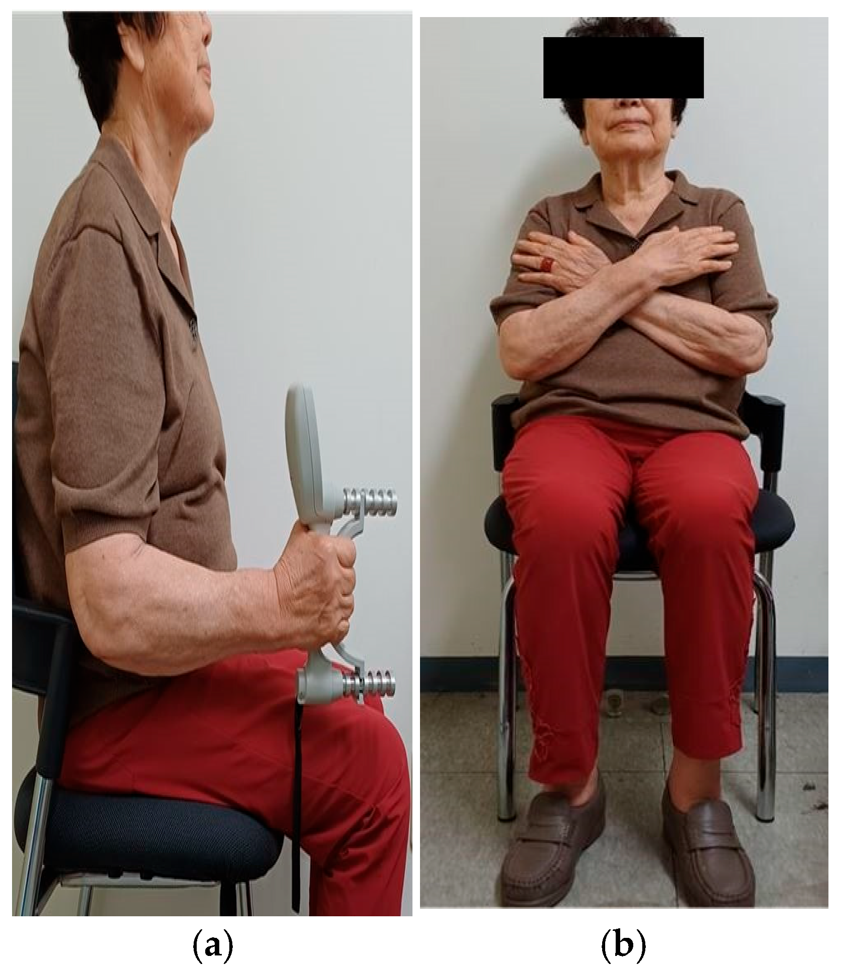 - Benton, M.J.; Spicher, J.M.; Silva-Smith, A.L. Validity and reliability of handgrip dynamometry in older adults: A comparison of two widely used dynamometers. PLoS ONE 2022, 17, e0270132. [Google Scholar] [CrossRef]