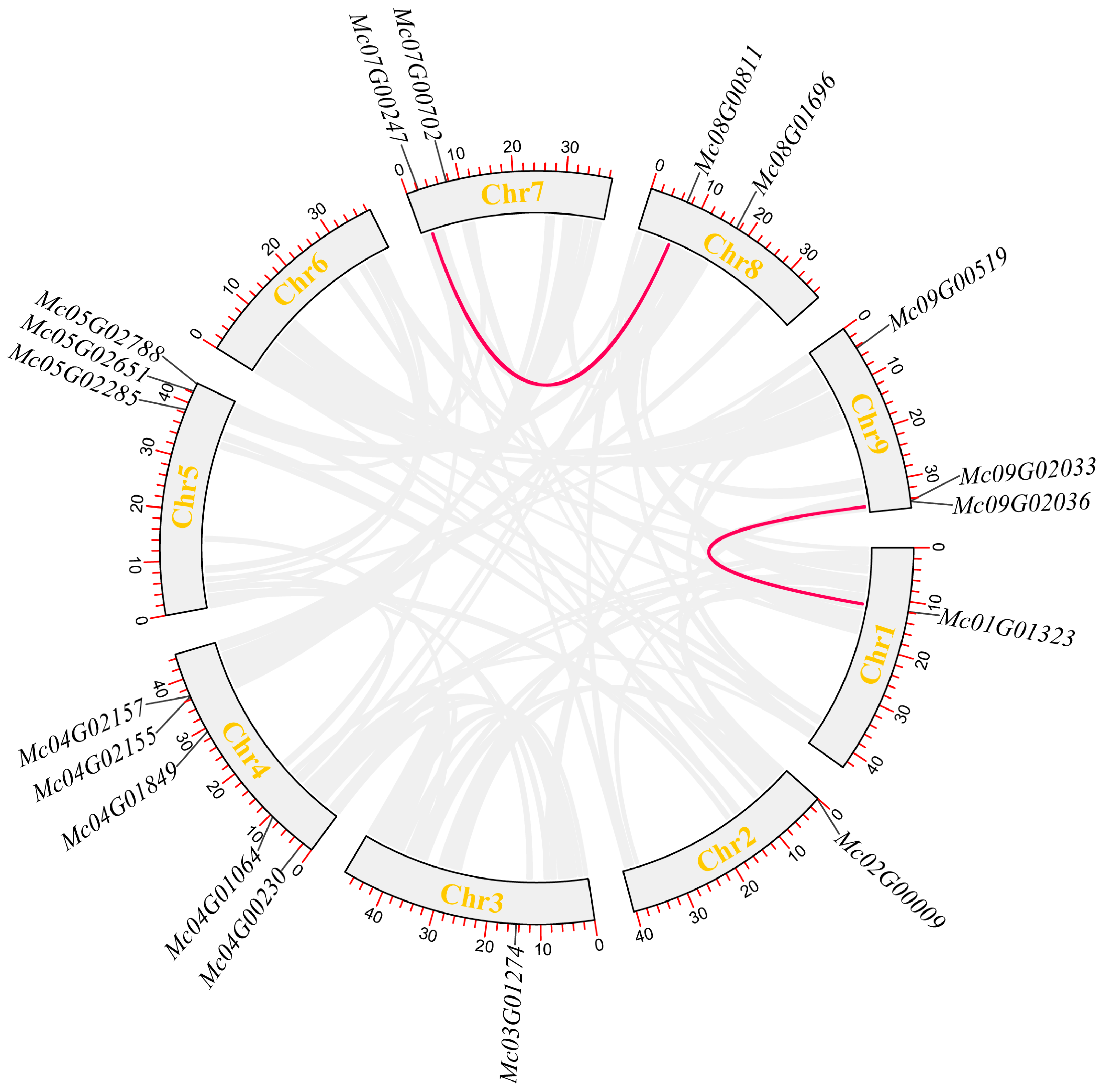 3.6. Intraspecies Collinearity Analysis of Ice Plant CBL-CIPK Gene Family Members