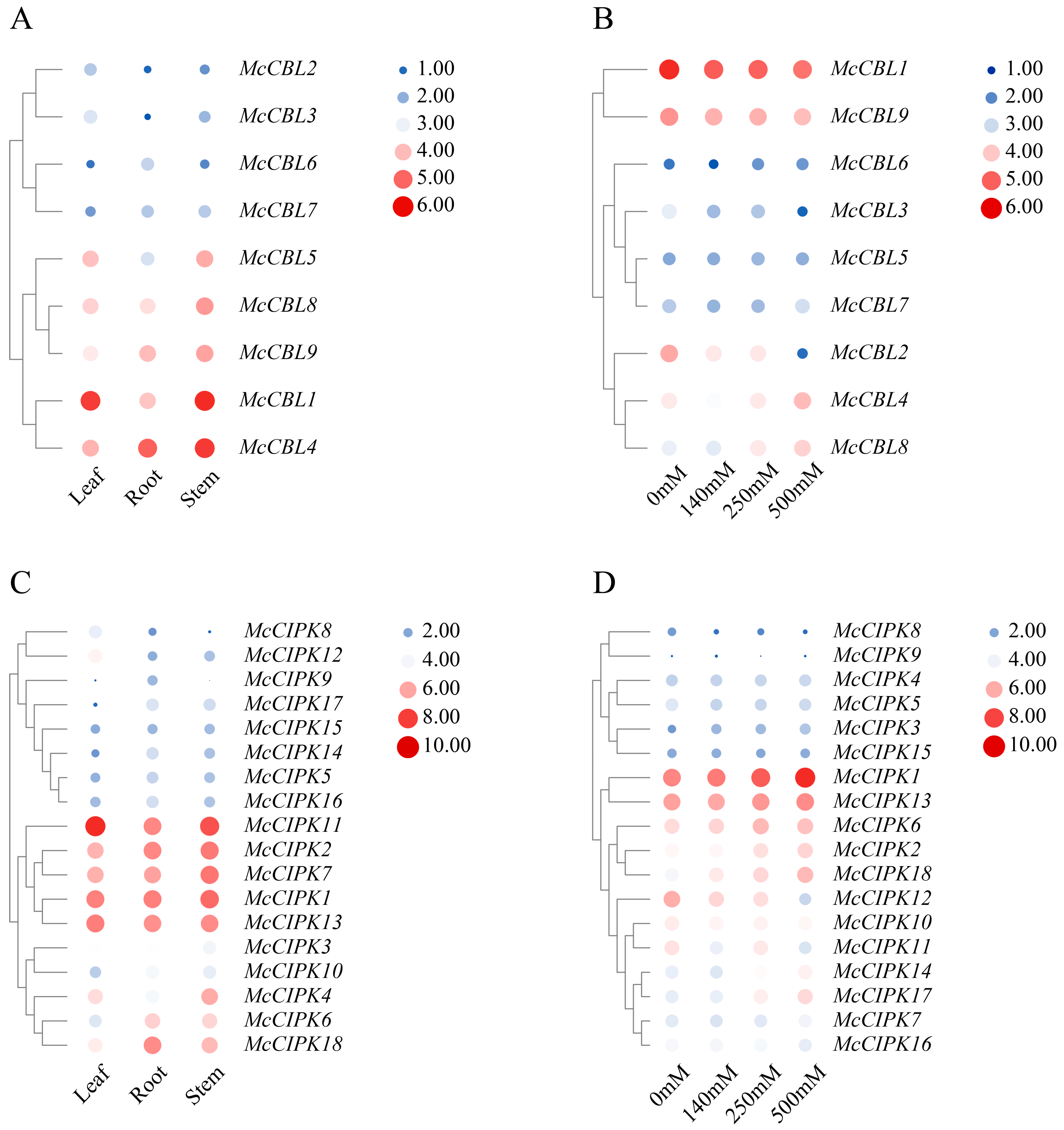 2.5. Analysis of Cis-Acting Elements in Ice Plant CBL and CIPK Genes