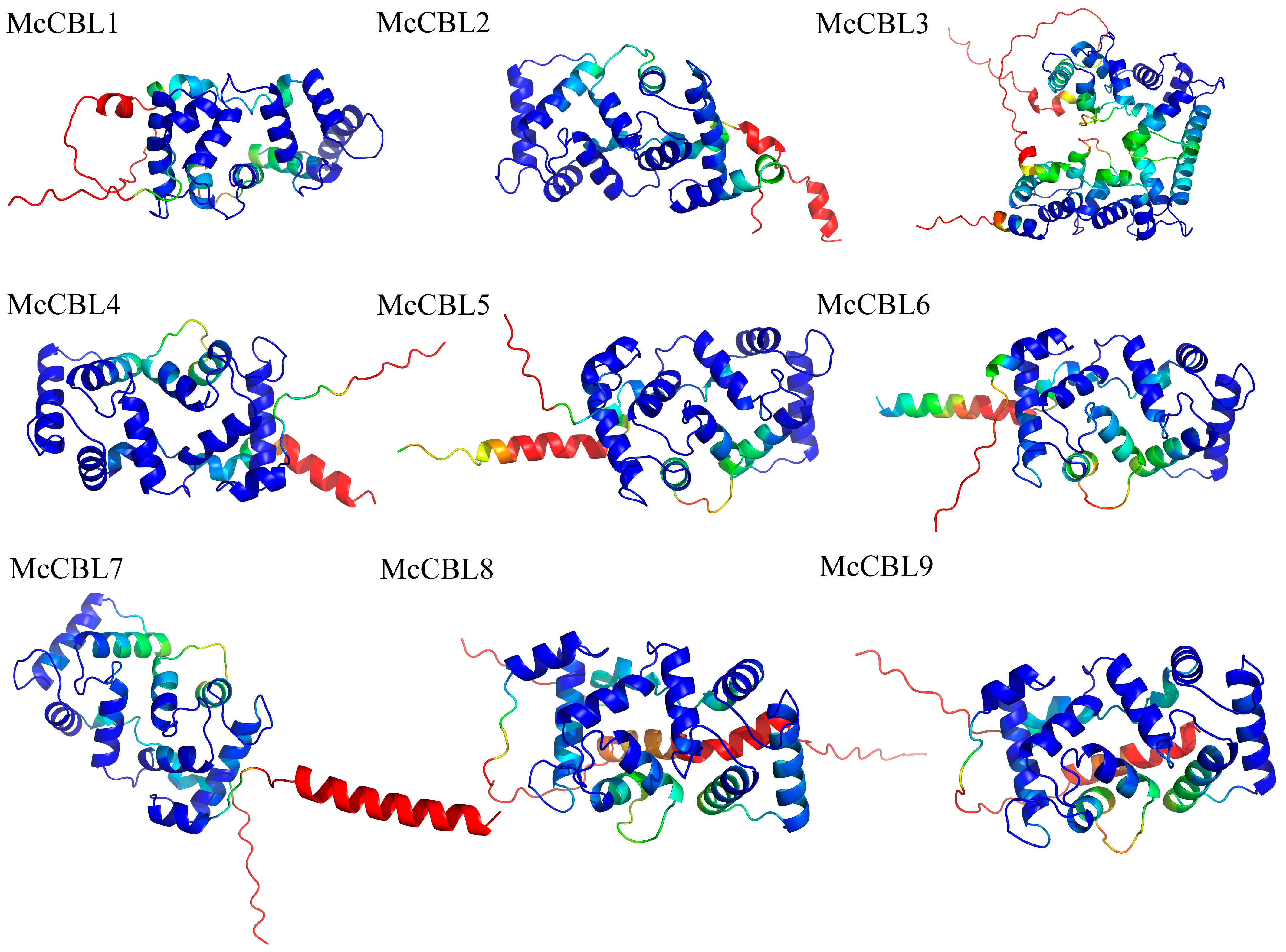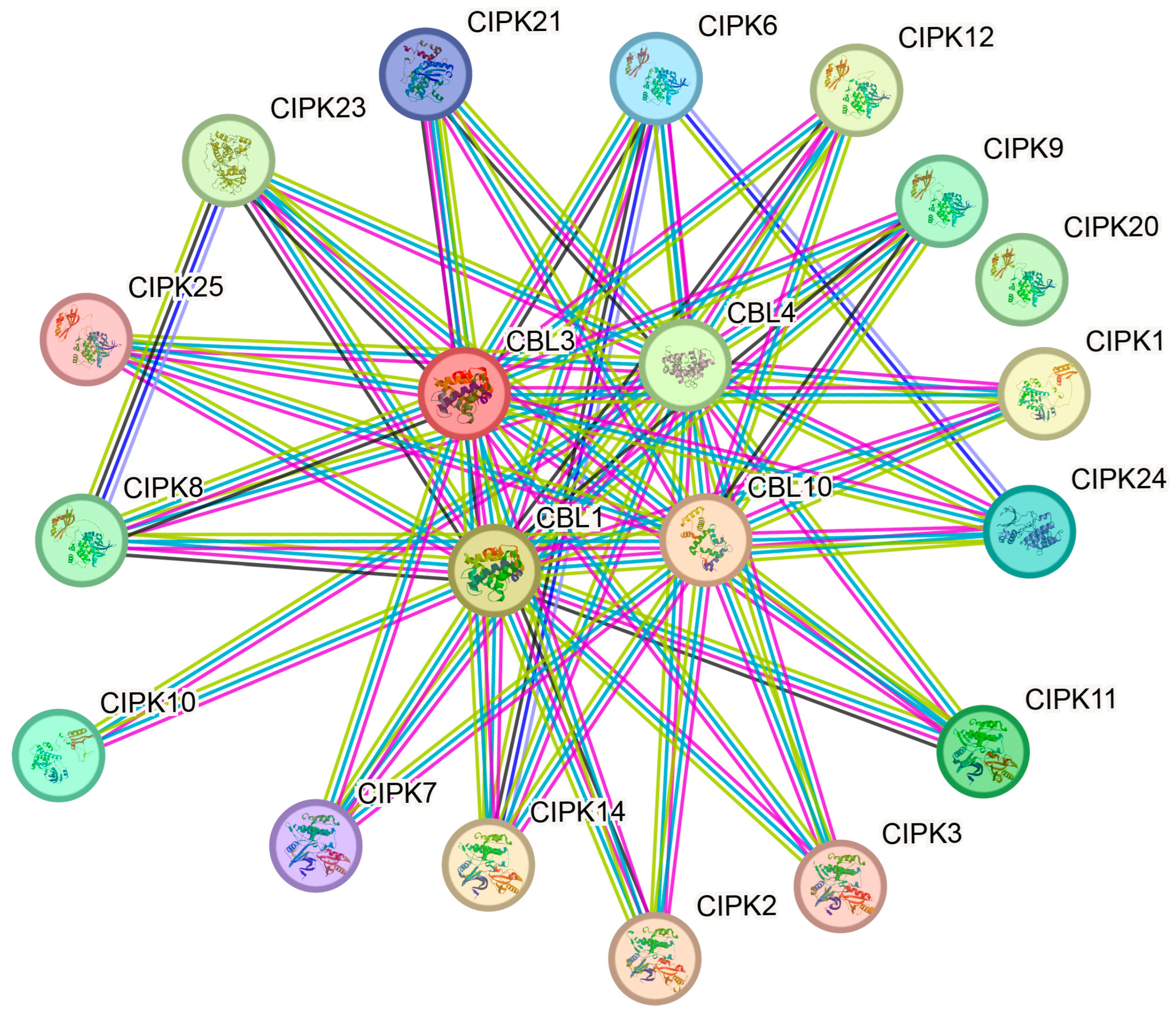 3.8. Construction of 3D Models and Protein Interaction Network Analysis for Ice Plant CBL-CIPK Proteins