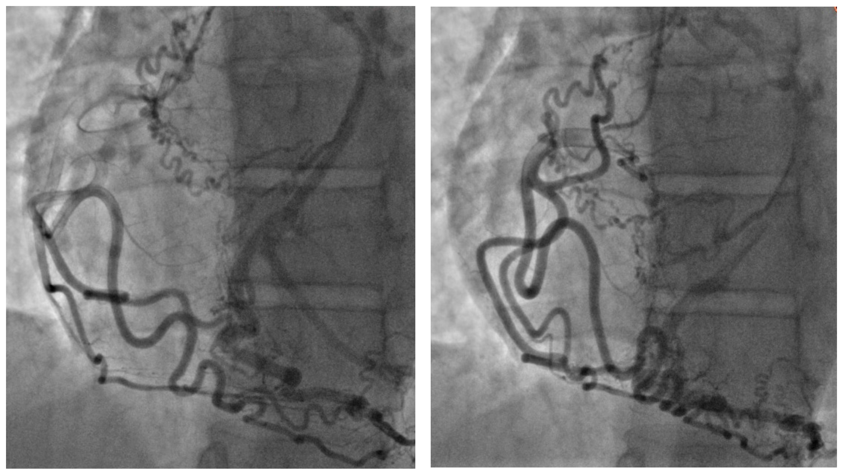 A 30-year-old male was referred to our institution for further evaluation of exertional angina and symptoms of heart failure. The patient’s medical history was significant for a non–ST-elevation myocardial infarction (NSTEMI) in 2019, for which he underwent coronary angiography at a regional clinical center.