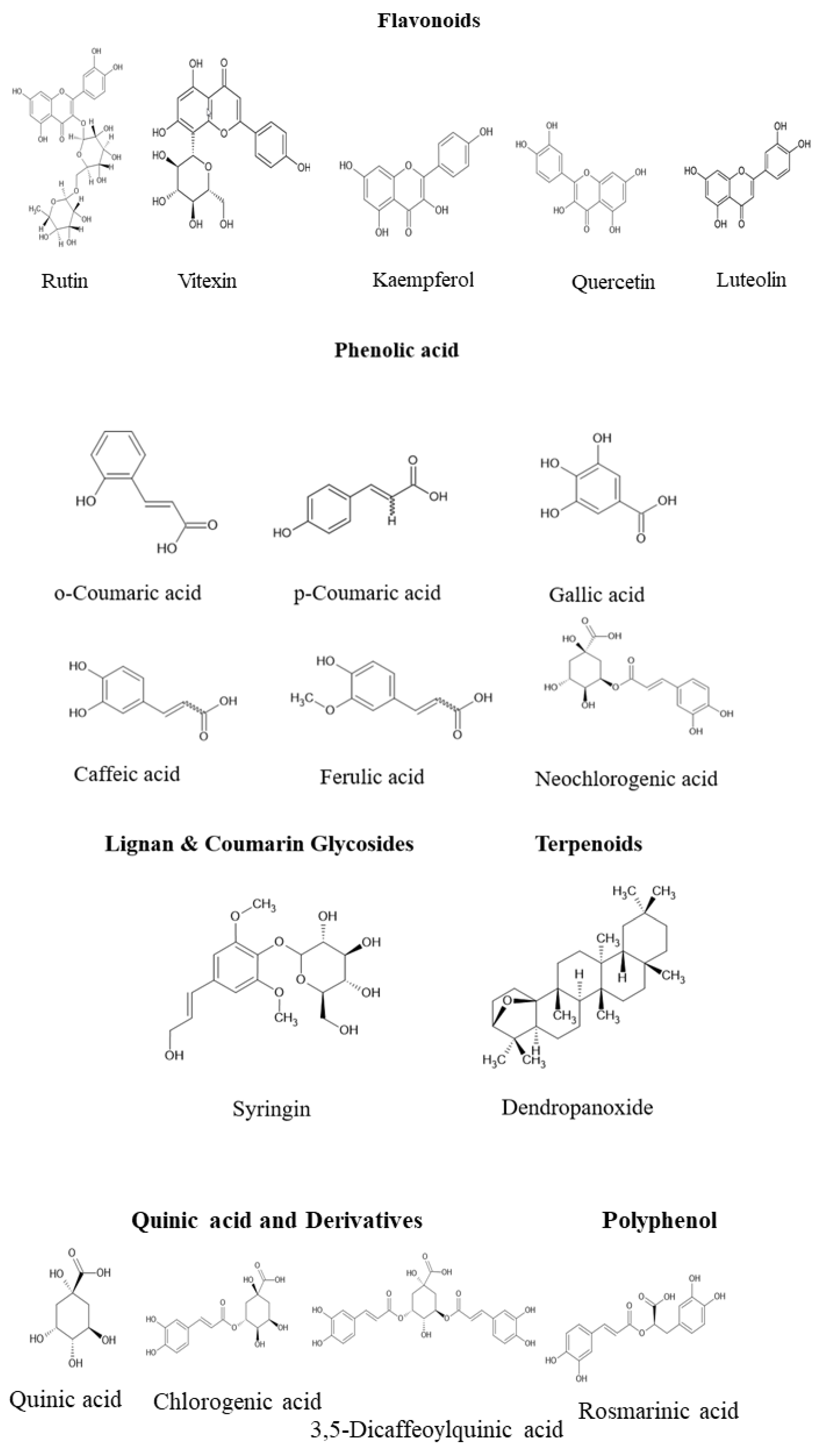 | Phenolic acids | Chlorogenic acid, caffeic acid, ferulic acid, etc. | H2O (0.1% FA)/ACN | 10–80% ACN over 30–40 min | 320–330 | Validated for chlorogenic and caffeic acids |