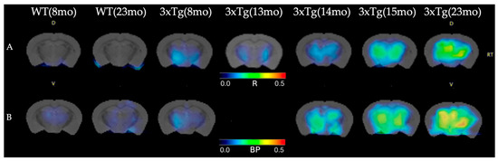 24], in addition to the ratio method analysis, kinetic modeling was applied to the dynamic data acquired in mice to perform quantitative analysis for comparison. The obtained BP parametric maps using the LRTM also showed a clear age-dependent increase in [
