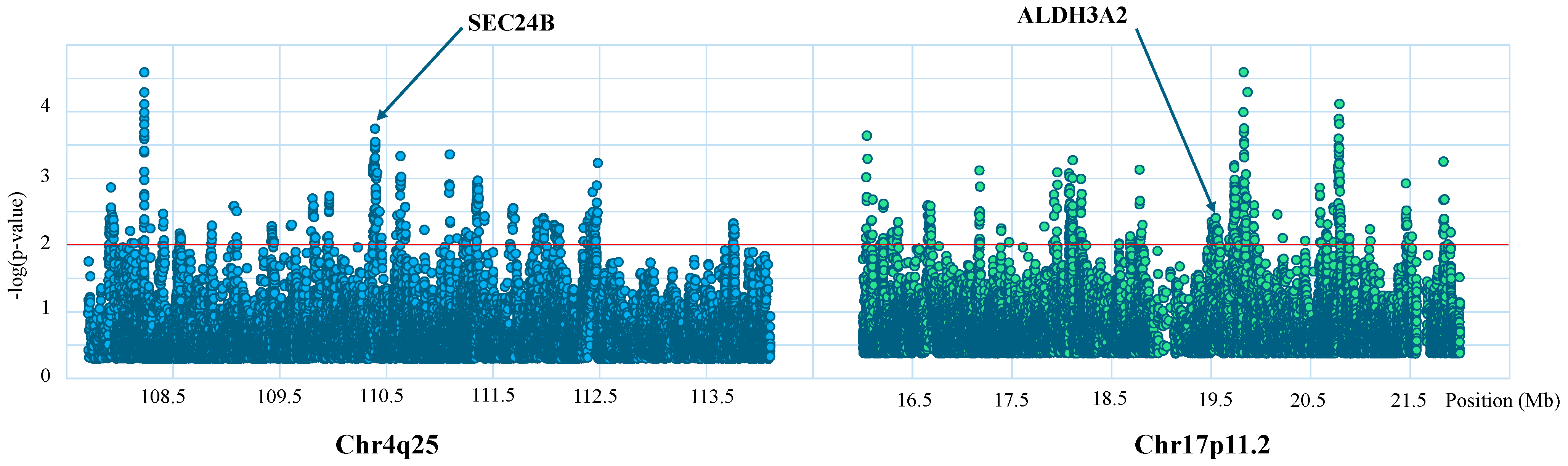 | rs2386145-C/G | Intron, ALDH3A2 | −2.93 | AFR | −3.06 | G | |