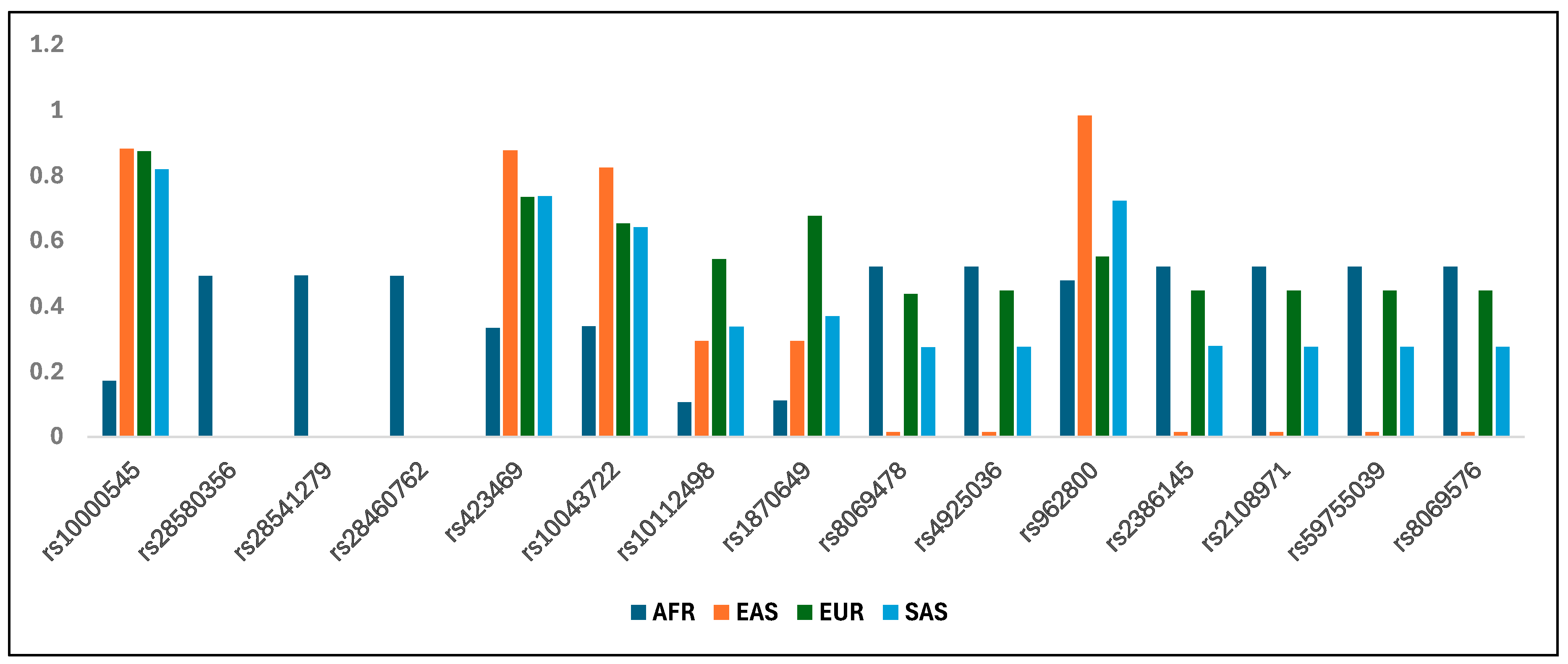 | rs1870649-C/G | Intron, NCOA2 | −3.50 | AFR | 3.21 | G | |