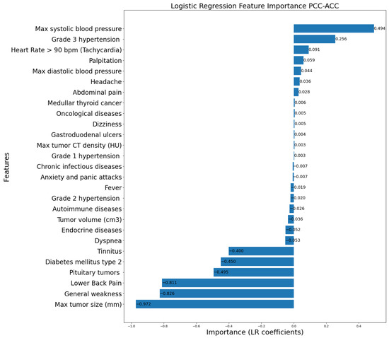 Logistic Regression feature importance for PCC vs. ACC.