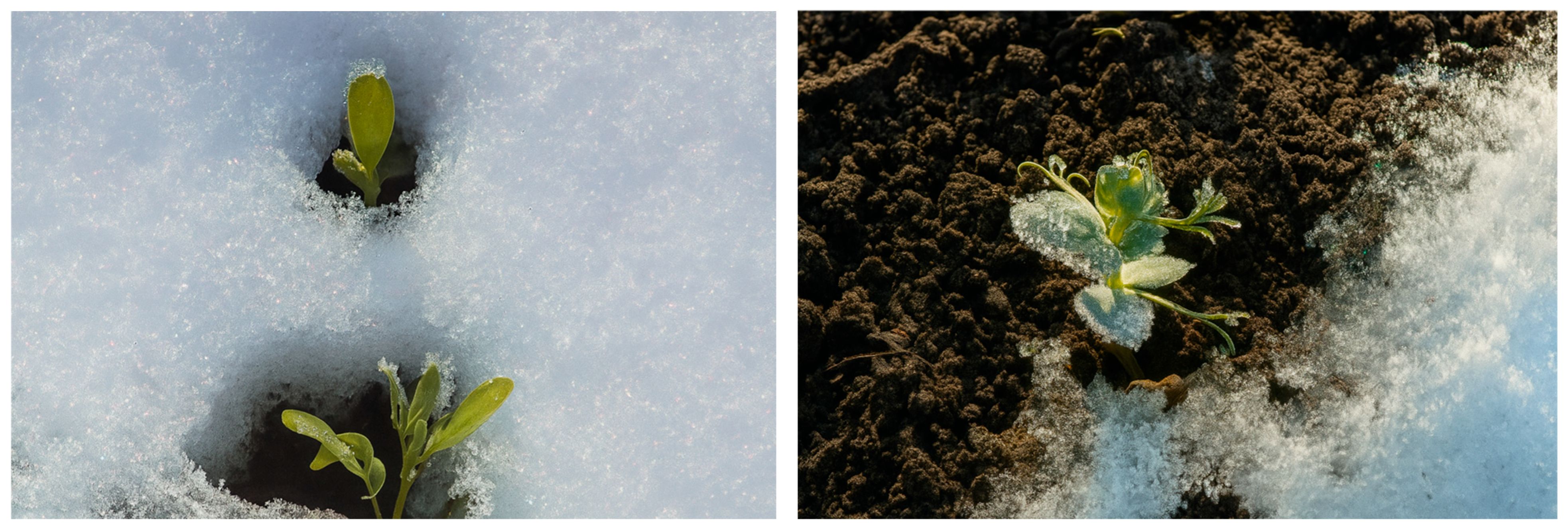 The term ‘winter hardiness’ means the long-term survival of the entire plant system during the winter months. In the case of annual herbaceous crops, it includes resistance to frost, long-term snow cover (lack of fresh air), desiccation caused by wind and solar radiation occurring below frost temperature, soil movement due to freeze–thaw cycles, and pathogens, which attack the weak plants in winter and early spring [79]. A broad range of ecological, anatomical, and physiological factors play a role in the mechanism for adaptation to the vicissitudes of winter.