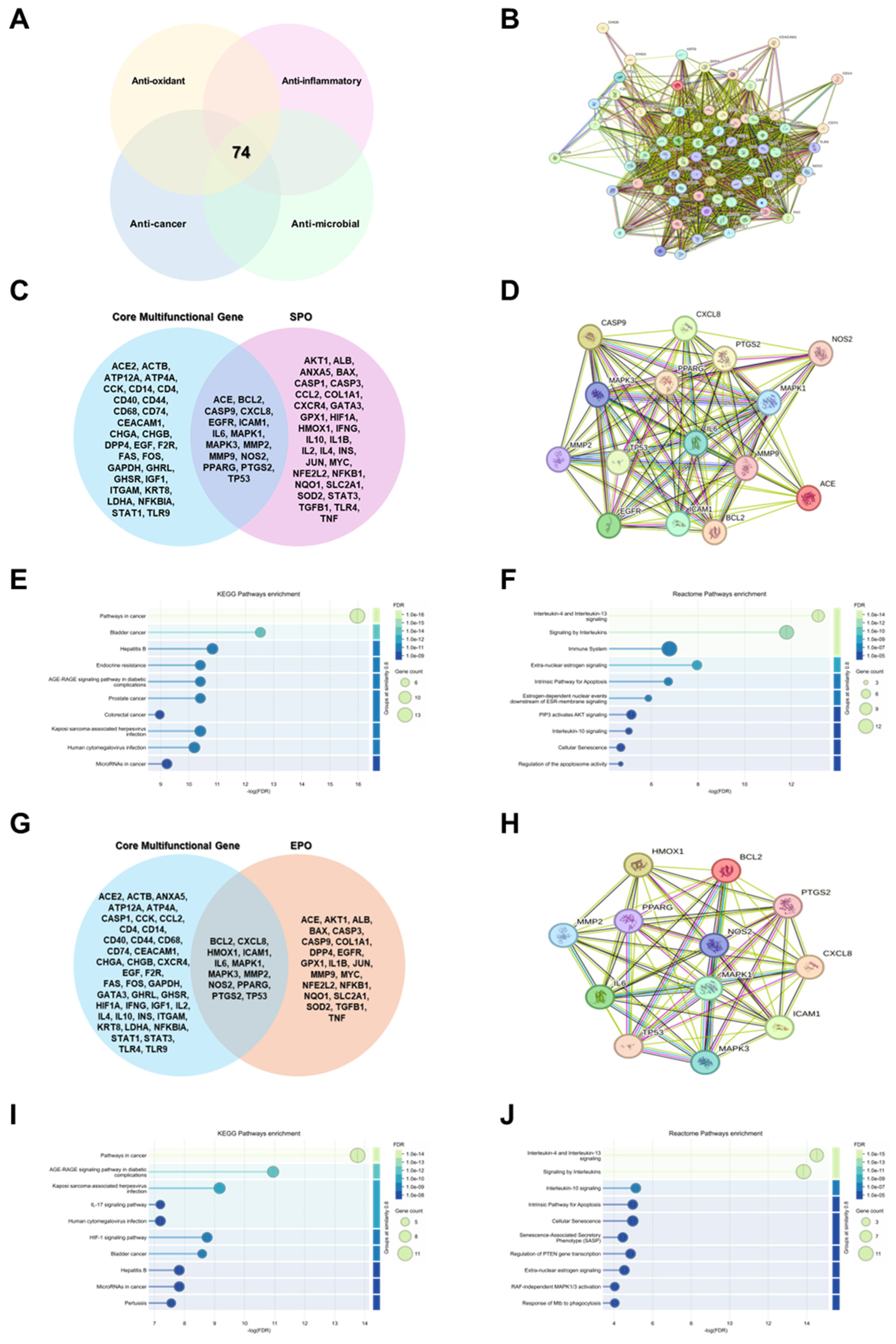 3.6. Network Pharmacology Analysis Predicts the Target Pathways of EPO and SPO