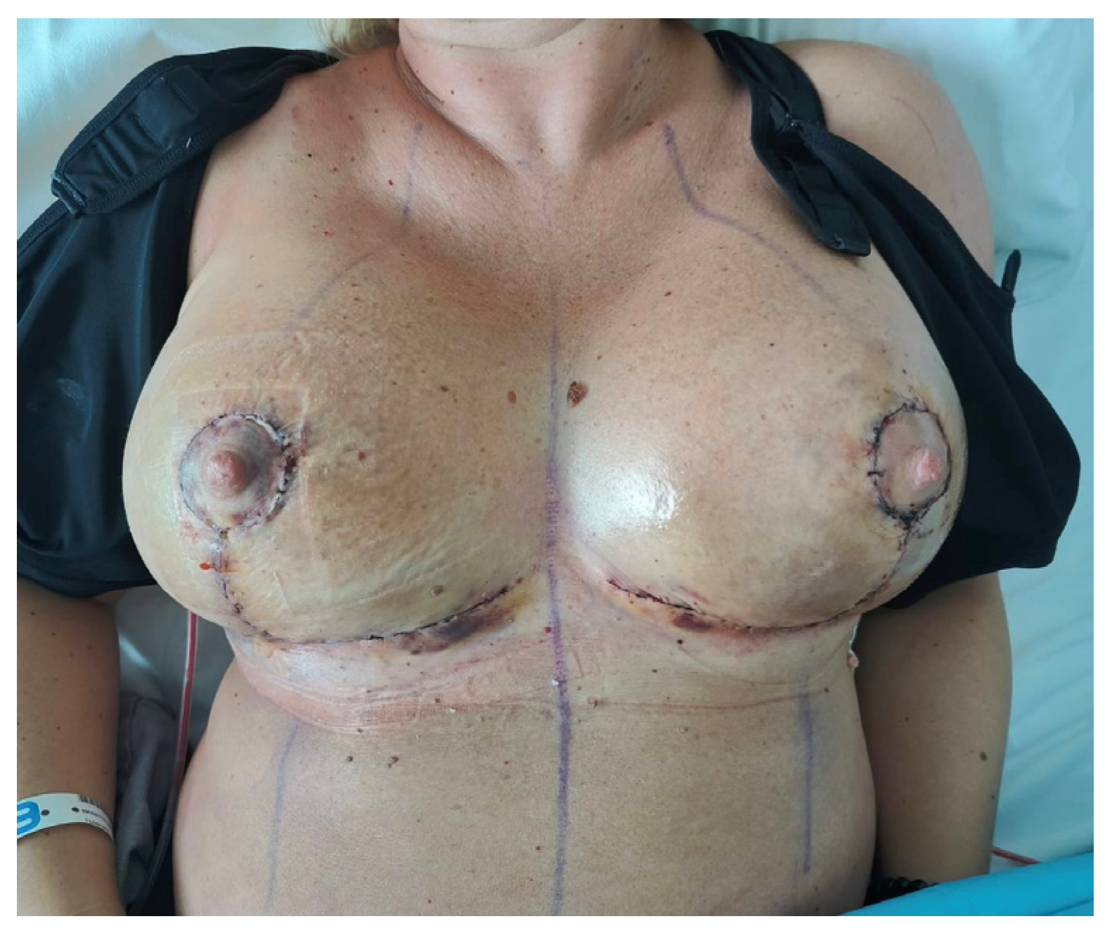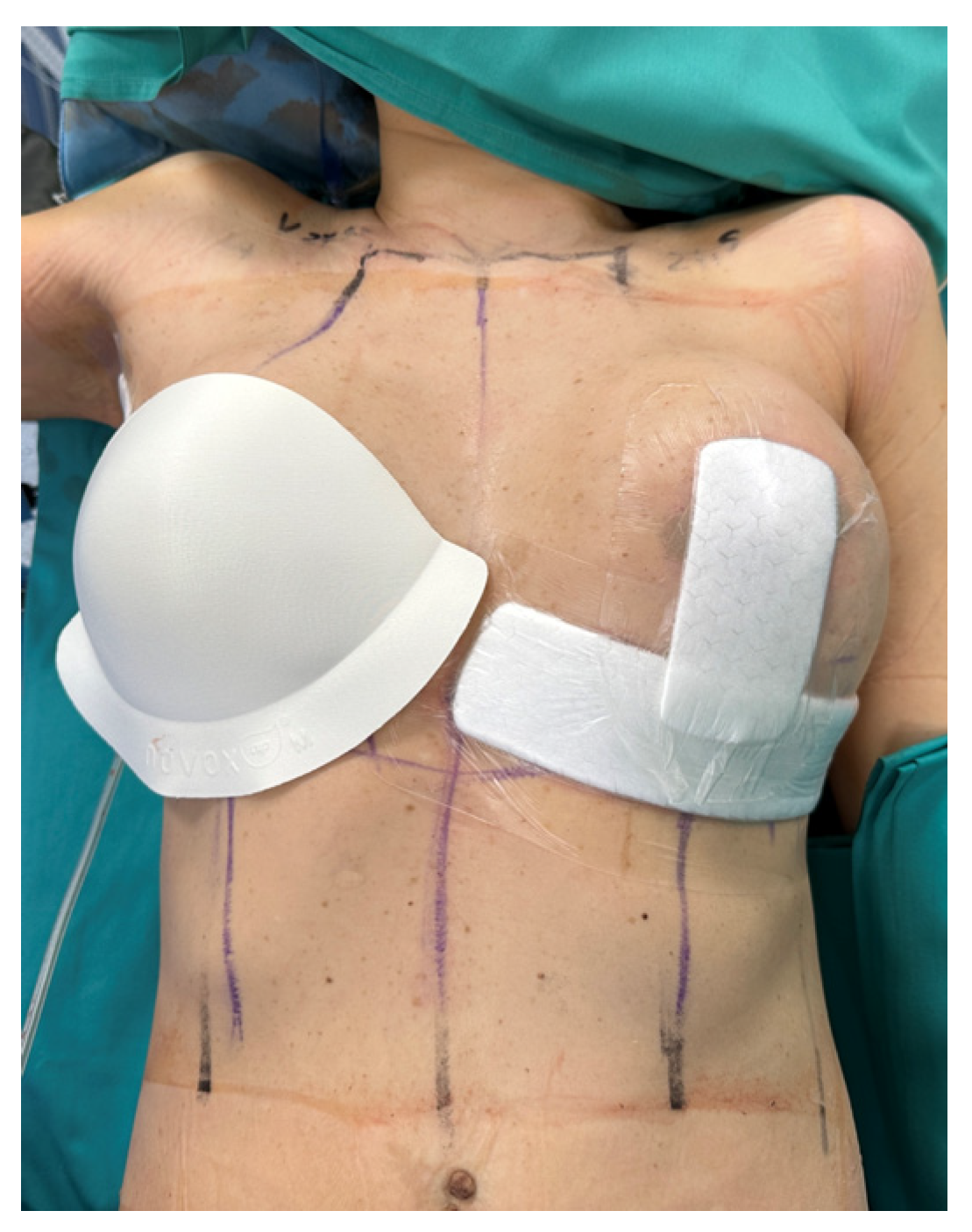 - Magalotti, C.; Nisi, M.; Ruiz, E.P.; Romiti, C.; Tinti, A.; Barillaro, I.; Muccitelli, A.; Franchini, L.; Brera, D.; Guarro, G. Enhanced Postoperative Evaluation in Oncoplastic Breast Surgery With Interactive Versus Traditional Dressings: A Comparative Study. Plast. Reconstr. Surg.-Glob. Open 2025, 13, e6724. [Google Scholar] [CrossRef] [PubMed]