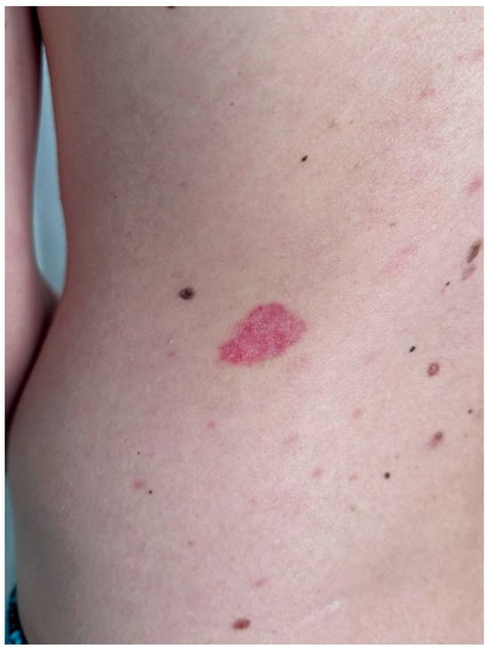 202234First cutaneous lesion detected (left lumbar region)Full-body clinical examination; dermoscopy; skin biopsyBasal cell carcinoma, nodular subtypeComplete surgical excision