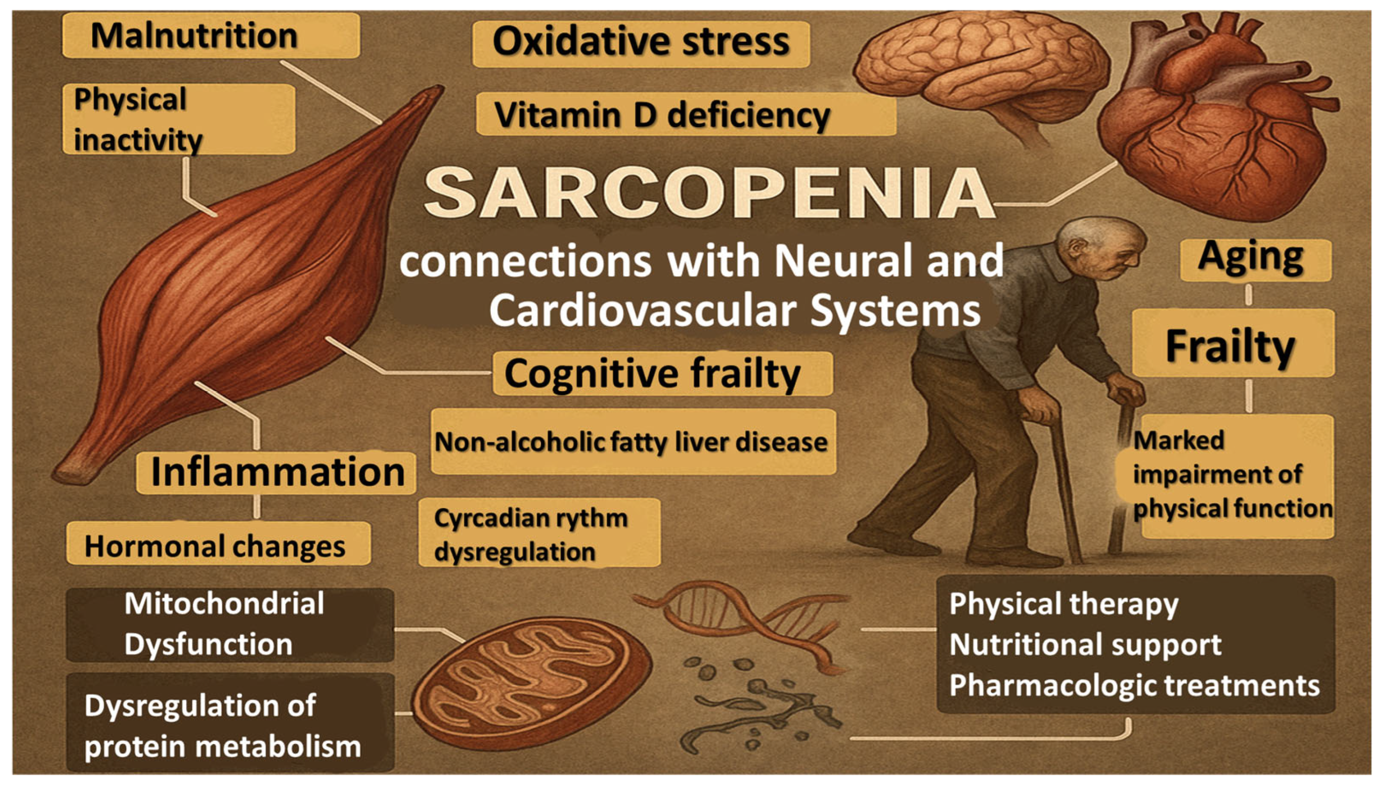 Popescu C, Aurelian S-M, Mirea A, Munteanu C, Vlădulescu-Trandafir A-I, Anghelescu A, Oancea C, Andone I, Spînu A, Suciu A-V, et al. Sarcopenia as a Multisystem Disorder—Connections with Neural and Cardiovascular Systems—A Related PRISMA Systematic Literature Review. Life. 2026; 16(1):68. https://doi.org/10.3390/life16010068