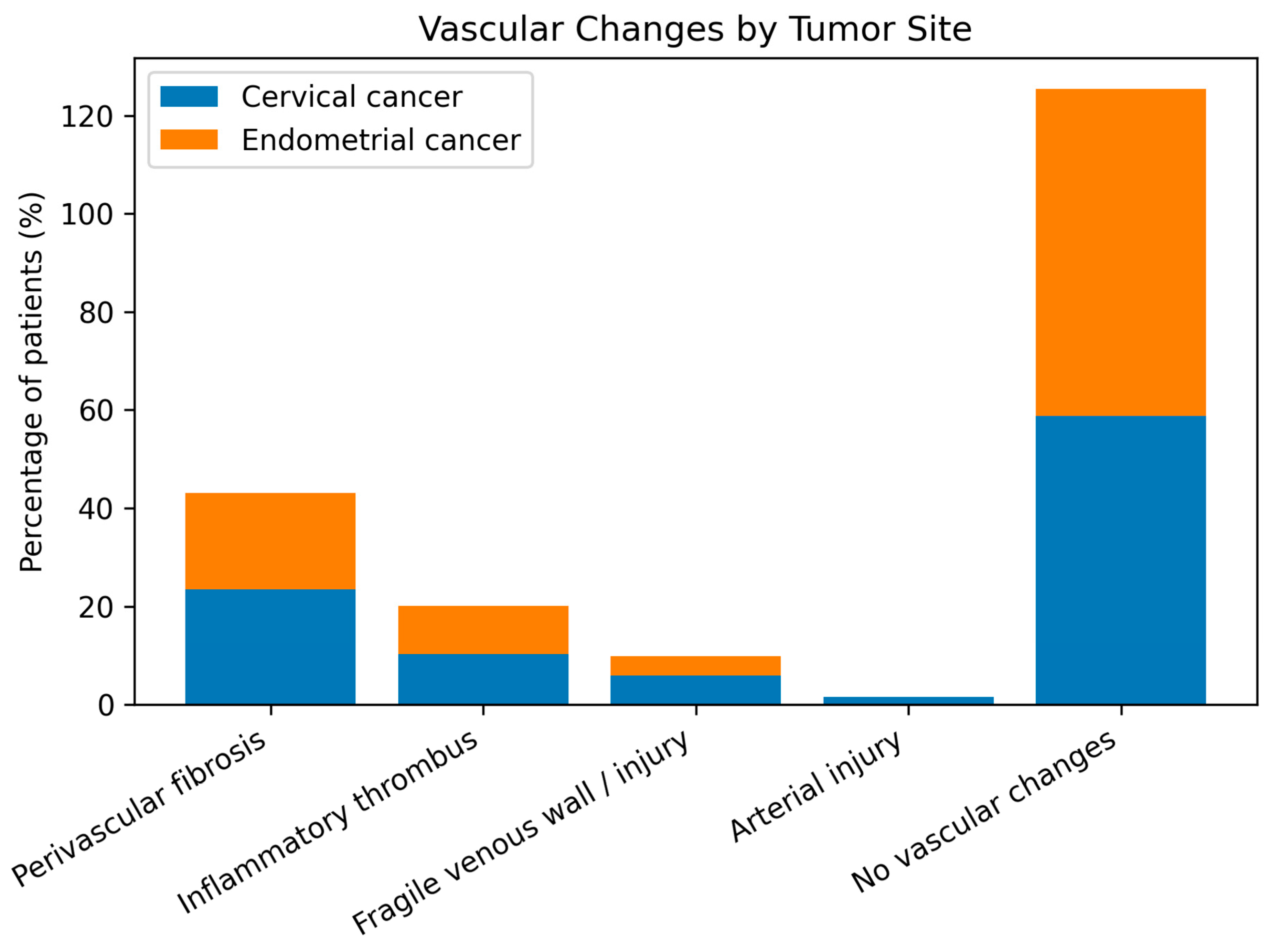 This study has several important strengths. First, it focuses on a well-defined and clinically relevant cohort of patients undergoing pelvic oncologic surgery after radiotherapy, reflecting real-world surgical practice in a tertiary cancer center. Second, the integration of clinical data and detailed intraoperative assessment provides a comprehensive characterization of radiation-induced vascular and perivascular changes, helping to bridge the gap between known pathophysiological mechanisms and surgical outcomes. Third, the direct comparison between cervical and endometrial cancer patients offers valuable insights into tumor-specific perioperative risk profiles, which have been insufficiently addressed in previous literature. Finally, the standardized surgical approach and detailed intraoperative vascular documentation enhance the internal validity and reproducibility of the findings.