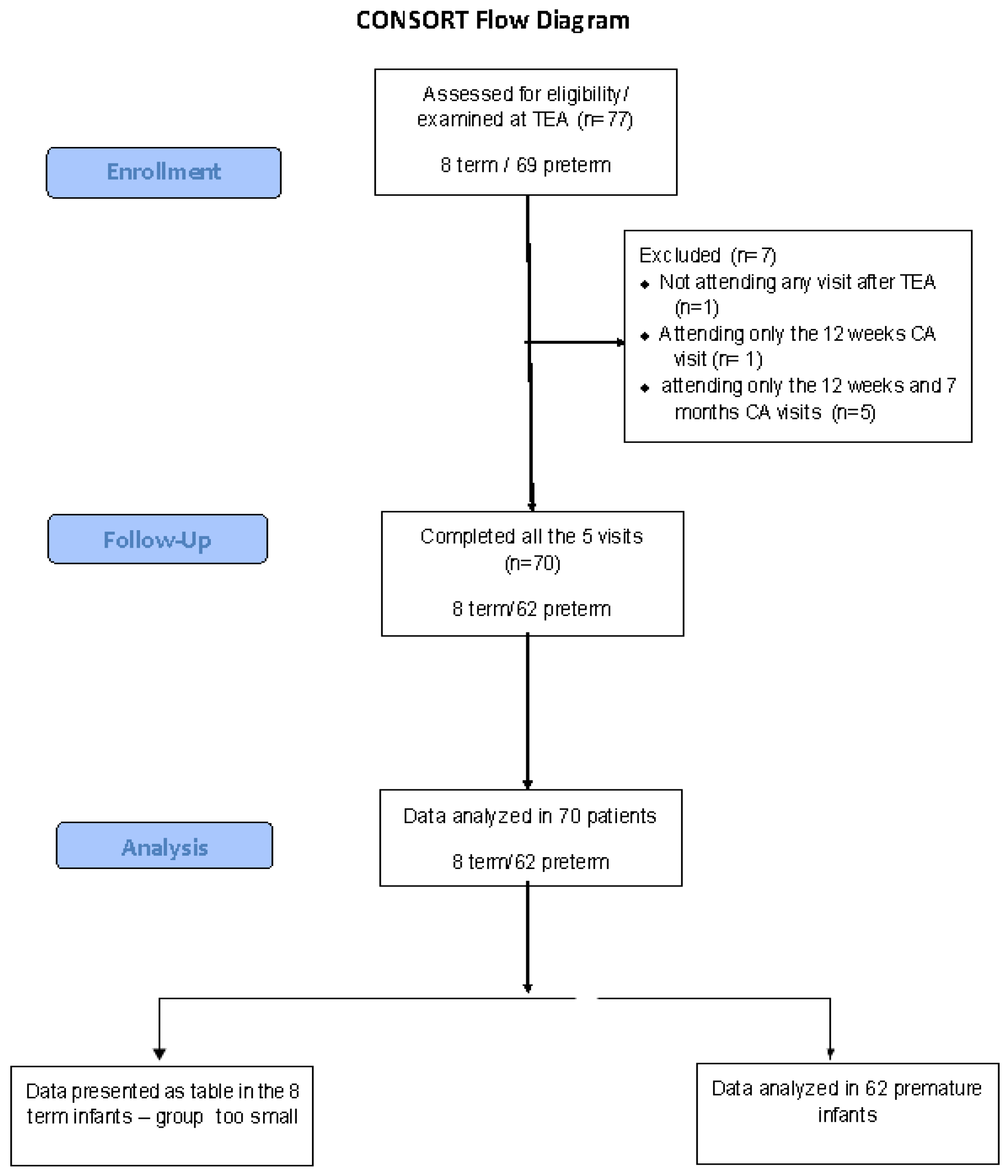 - The patient was followed until 24 months corrected age or until a diagnosis of cerebral palsy (CP) was established—whichever occurred sooner.