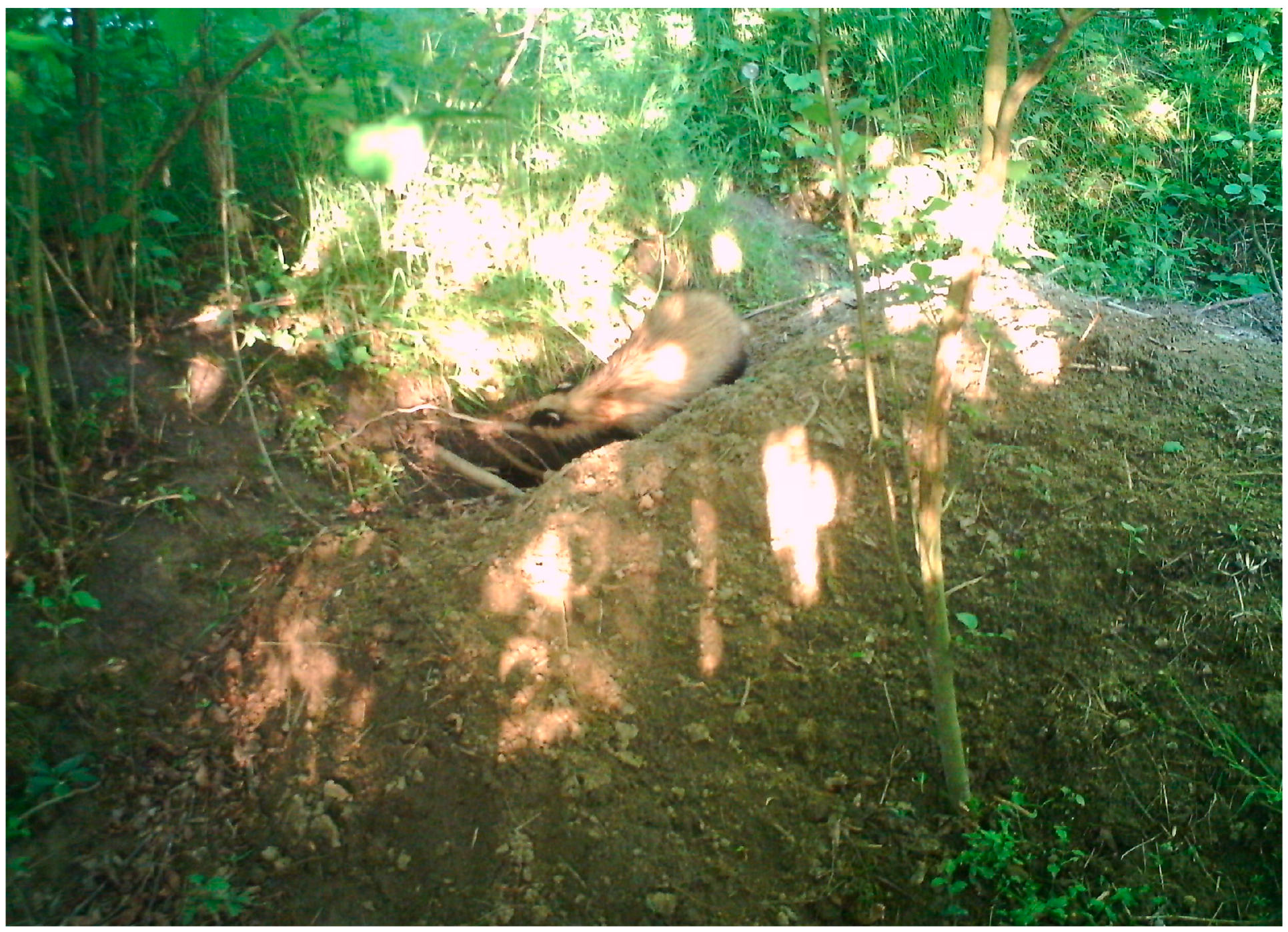 22. Márton, M. Az Európai Borz és a Vörös Róka Kotorékhely-Kompetenciójának Vizsgálata Különböző Terepbiológiai Módszerekkel. Ph.D. Thesis, Szent István Egyetem, Vadbiológiai és Vadgazdálkodási Tanszék, Gödöllő, Hungary, 2018; 104p. [Google Scholar]