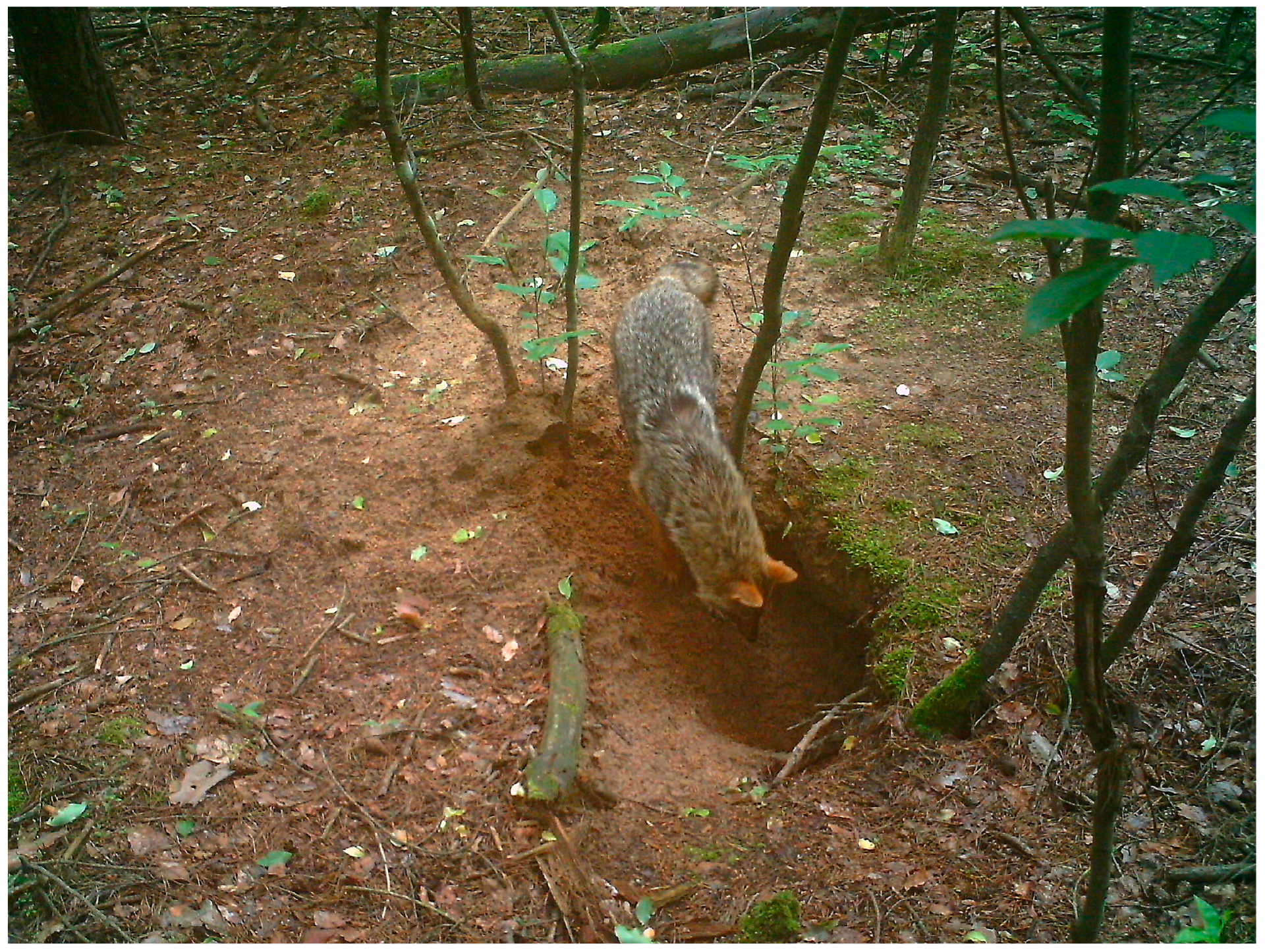 In a significant part of Central Europe, including Hungary, the red fox (Vulpes vulpes Linnaeus, 1758), Eurasian badger (Meles meles Linnaeus, 1758), and golden jackal (Canis aureus Linnaeus, 1758) are considered widespread species of mesopredators. The red fox was the predator with the largest number of individuals in Hungary in the 2000s and 2010s [4]. In addition, the European badger was added to the list of huntable species in 2001 due to its nationwide distribution [5,6]. In the 1980s, Hungary was one of the first countries where the golden jackal reappeared in Europe [7,8]. As no breeding individuals of jackals were recorded between 1940 and 1990, the species was declared extinct in 1989 [9]. In the early 1990s, jackals began to return, and their population grew so rapidly that it became a huntable species in 1994, as a species that could be hunted throughout the year until 1999 and again from 2012 onwards. In between this period, the hunting season was from 1st of July to the end of February [10,11]. In addition to the above-mentioned effects of mesopredators (predation, competition), foxes and badgers are known to spread diseases that pose a risk to animal and human health [12]. Overall, these factors make it important to manage predators in a conscious manner based on measured data. For this reason, understanding the population dynamics and habitat selection of predators is necessary [13,14]. Foxes and badgers use burrows. Therefore, it is useful to know the location of these underground shelters. The results of population estimations based on burrows can be biased by several behavioral factors. For example, badgers can live either alone or in clans [15]. On the other hand, foxes may use several burrows during a given period, which can lead to an overestimation of population size [16]. It is also possible that foxes and badgers share the same burrows or that certain entrances are only used seasonally [17]. The golden jackal can use burrows as well, but in most cases, it has shelter on the ground surface [18]. In this regard, proportional regional differences are noted for different geoecological habitats of these species of mesopredators [19,20]. Due to these factors, it is important to observe the burrows found and integrate the data collected into predator management.