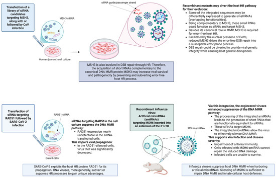 - Viruses can also be engineered to analyze how oncogenic viruses impair host processes, such as DDR. Particularly, viruses have been manufactured that artificially enhance suppression of the DNA MMR pathway [46]. Specifically, a recombinant influenza strain was created by adding microRNA sequences into an extended 3′-UTR that downregulates MSH6 function.