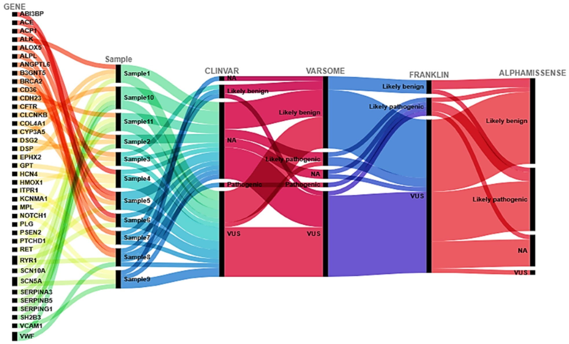 | 8 | Calcium–bradykinin convergence | RYR1 c.7921C>T; XPNPEP2 c.644C>T | VWF c.3692A>C; ALPL c.571G>A | Calcium/bradykinin |