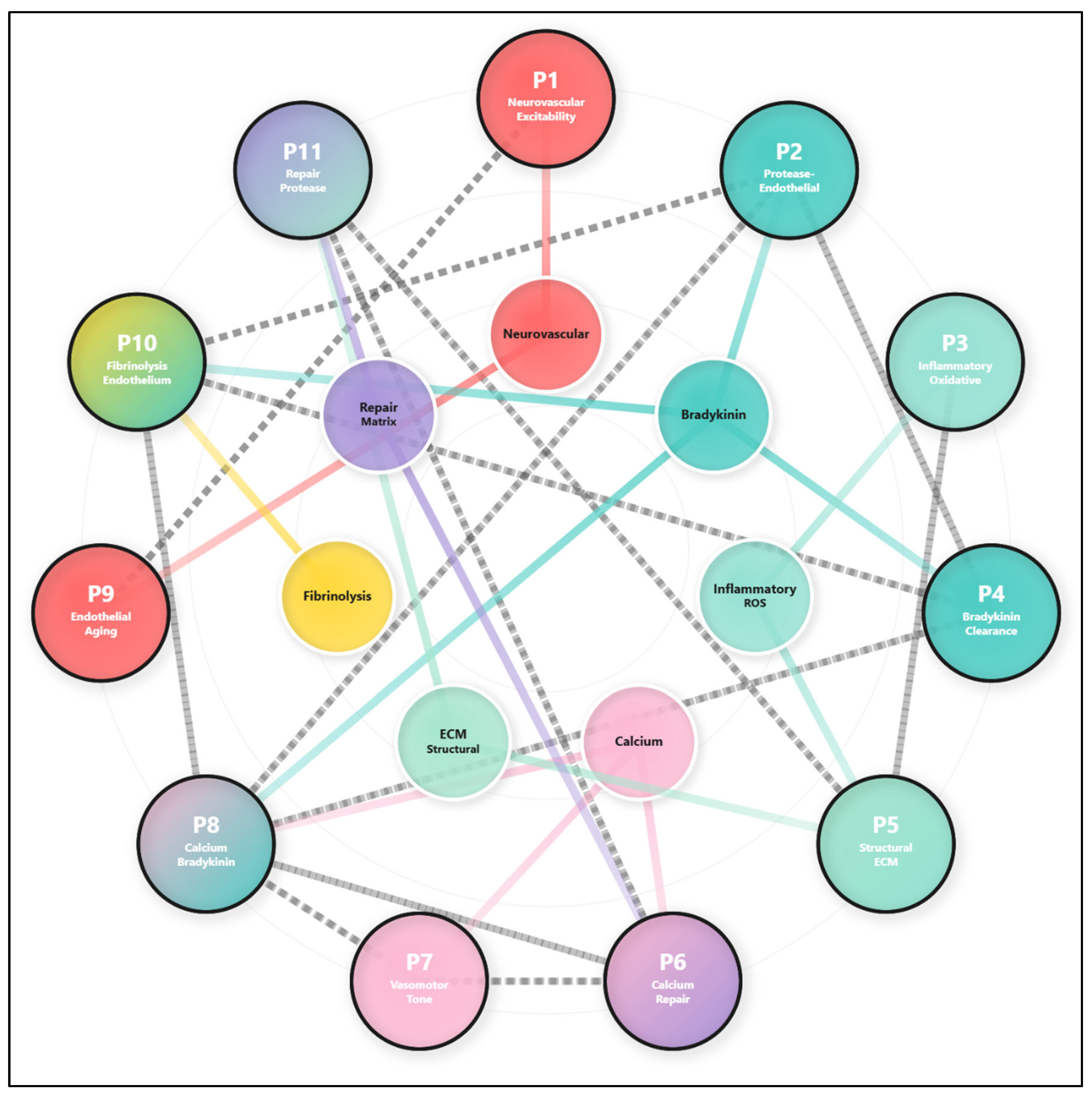 | 2 | Protease–endothelial imbalance | CD36 c.1155dupA; SERPING1 c.857G>A | DSP c.6575G>A; XRCC1 c.1727A>C | Bradykinin/barrier axis |