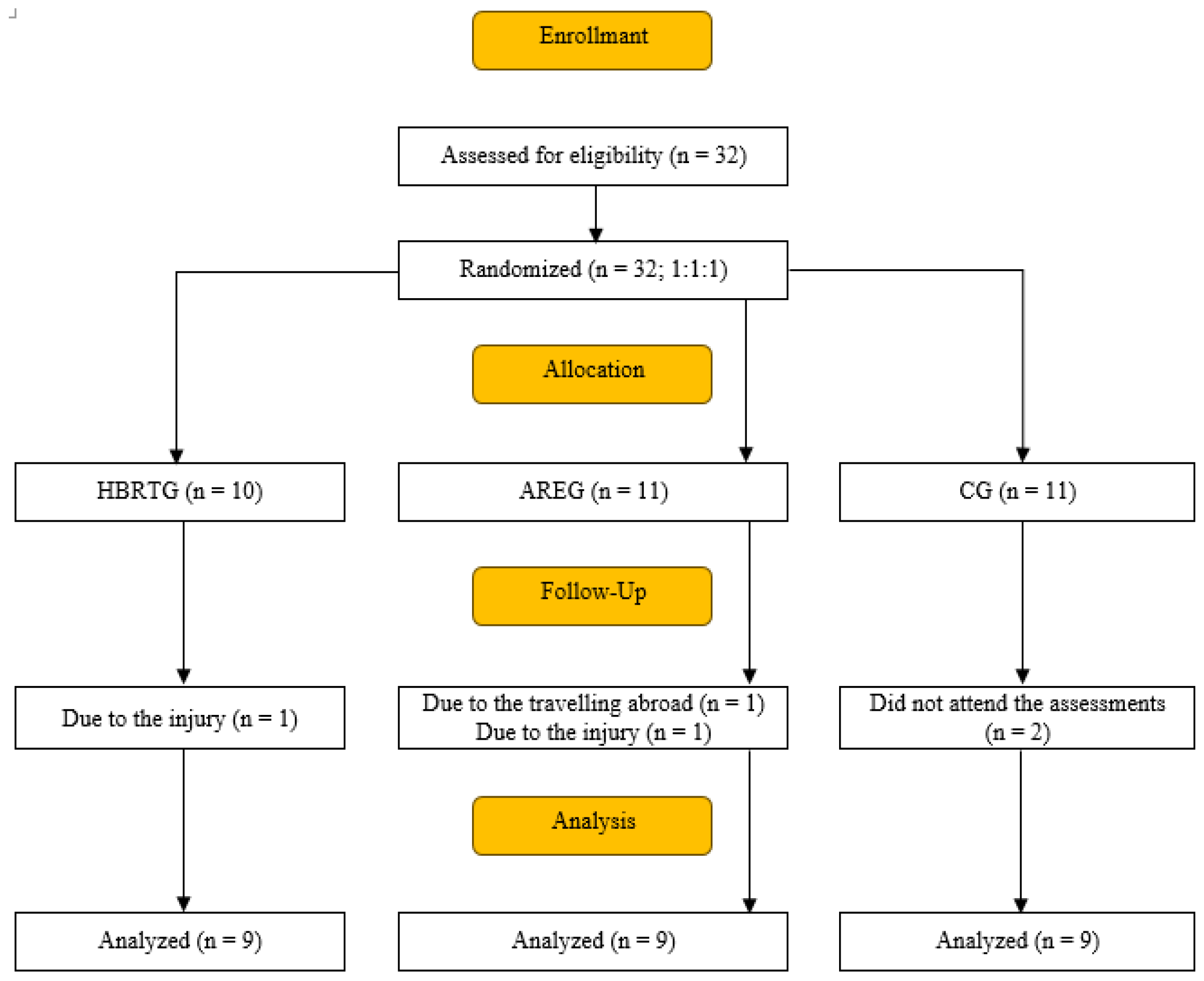 | Variable | HBREG (n = 9) | AREG (n = 9) | CG (n = 9) |
