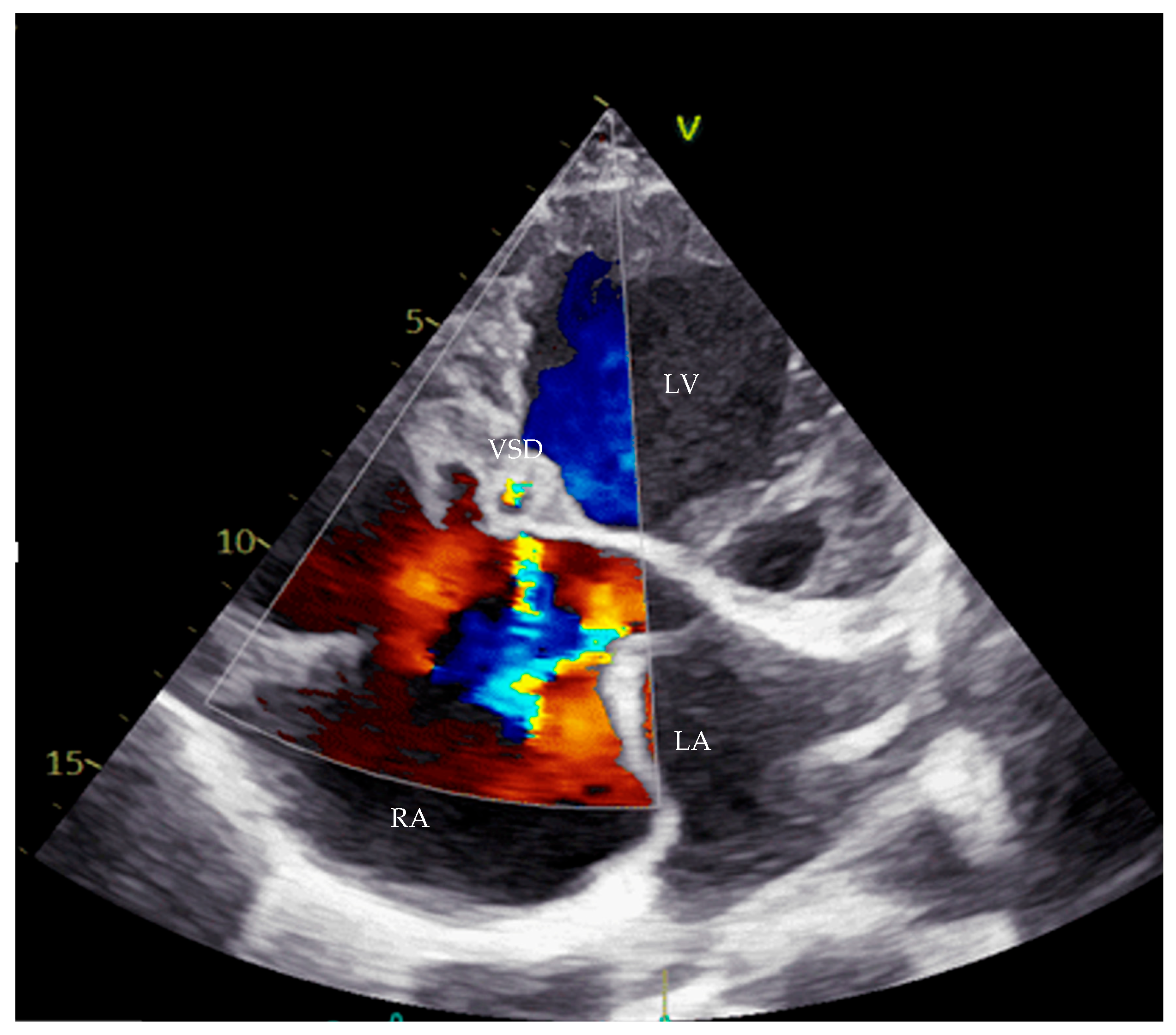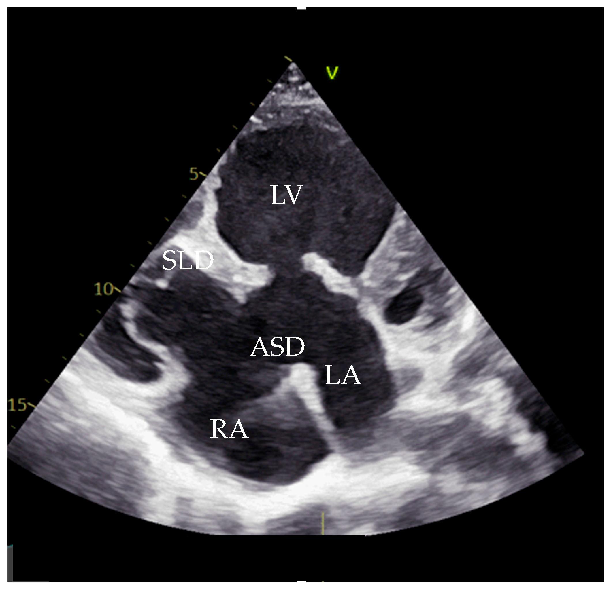 - Ahmed, I.; Alahmadi, M.H.; Anjum, F. Atrioventricular Septal Defect. In StatPearls [Internet]; StatPearls Publishing: Treasure Island, FL, USA, 2025. Available online: https://www.ncbi.nlm.nih.gov/books/NBK562194/ (accessed on 7 December 2025).