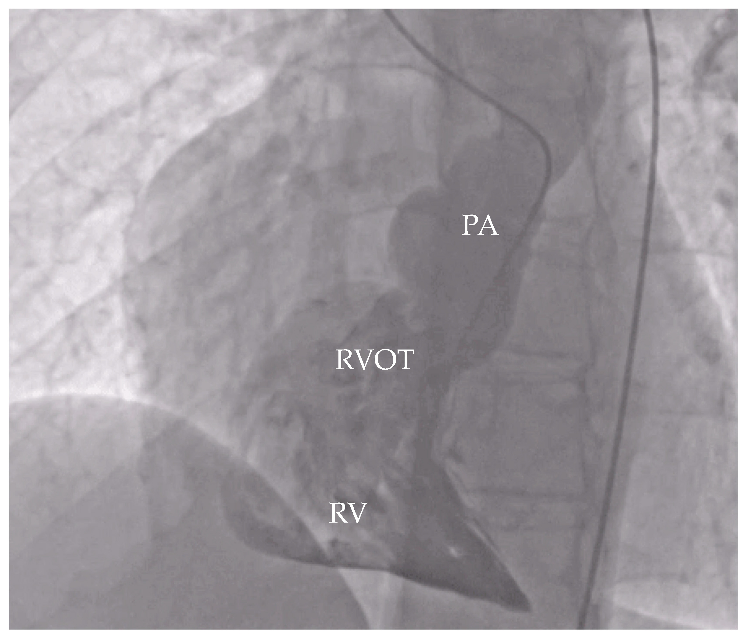 A 45-year-old woman was referred to the Center for Adult Congenital Heart Disease for evaluation of progressive dyspnea and recurrent palpitations. She had been diagnosed in early childhood with an AVCD accompanied by pulmonary artery stenosis and RV hypoplasia after presenting with central cyanosis. At 10 years of age, she underwent palliative surgical management with a modified right Blalock–Taussig shunt. However, she did not receive structured postoperative follow-up in the subsequent years.