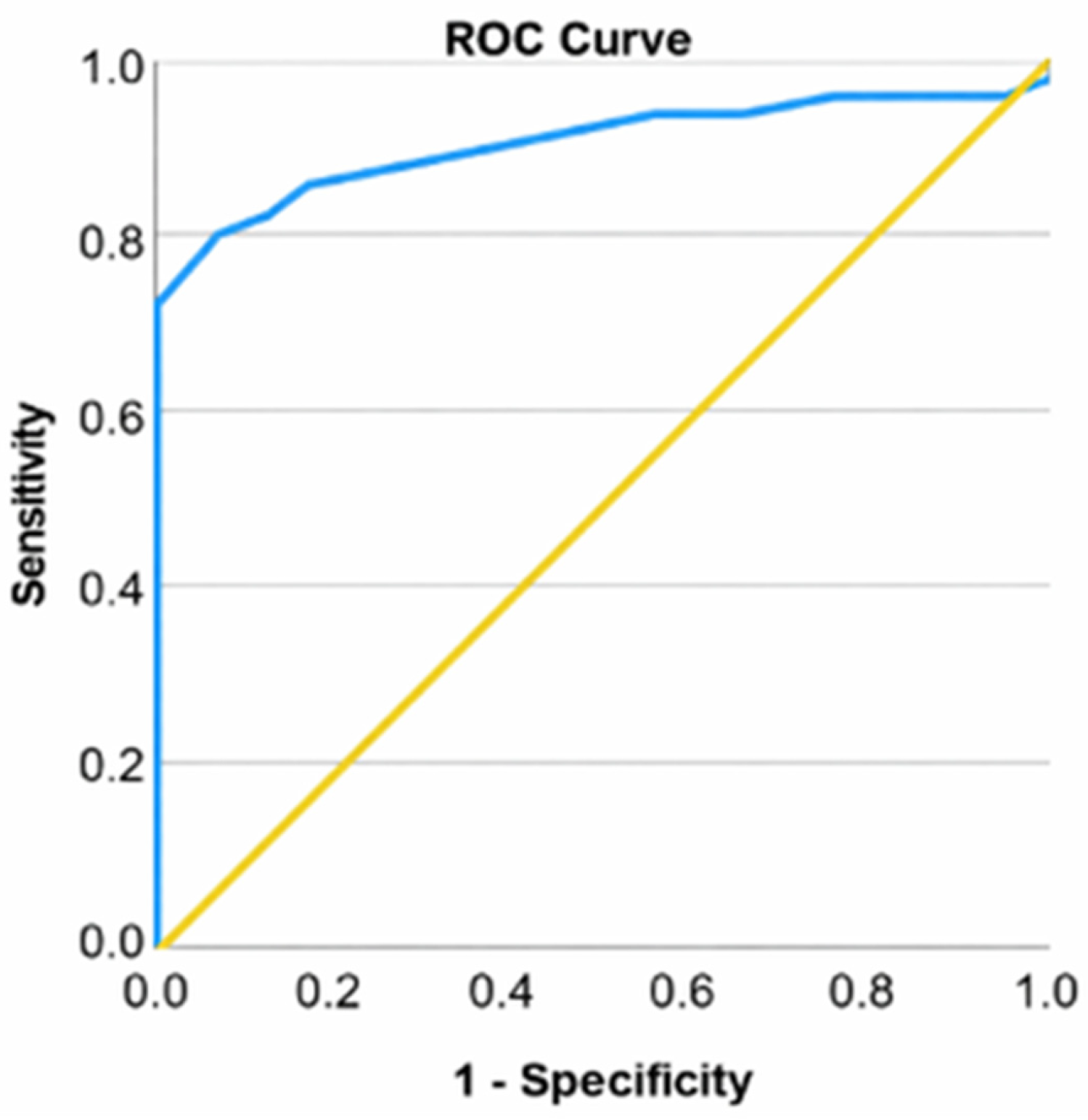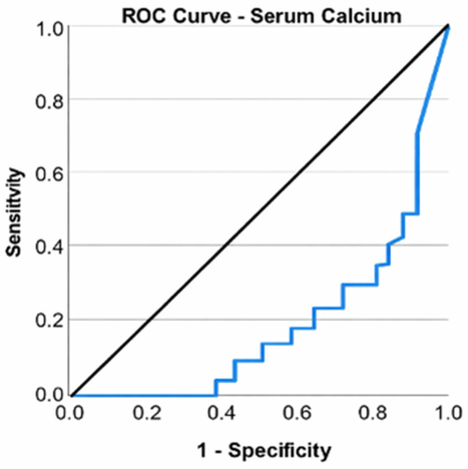 p ≤ 0.001. A ROC curve was used to assess the ability of serum calcium to classify patients according to the type of surgery (total knee arthroplasty or arthroscopic surgery). Serum calcium was found to be a valid predictor of the need for arthroplasty (