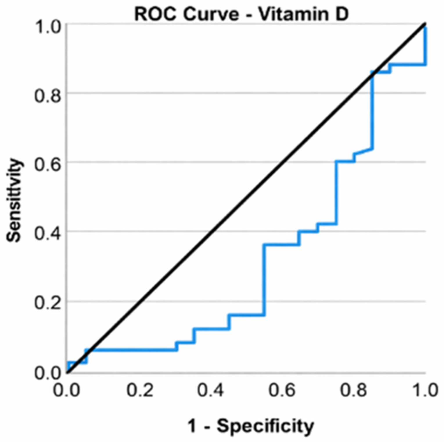 p = 0.049). A receiver operating characteristic (ROC) curve was used to assess the ability of vitamin D to classify patients according to the type of surgery (total knee arthroplasty or arthroscopic surgery). Vitamin D was found to be a valid predictor of the need for arthroplasty (