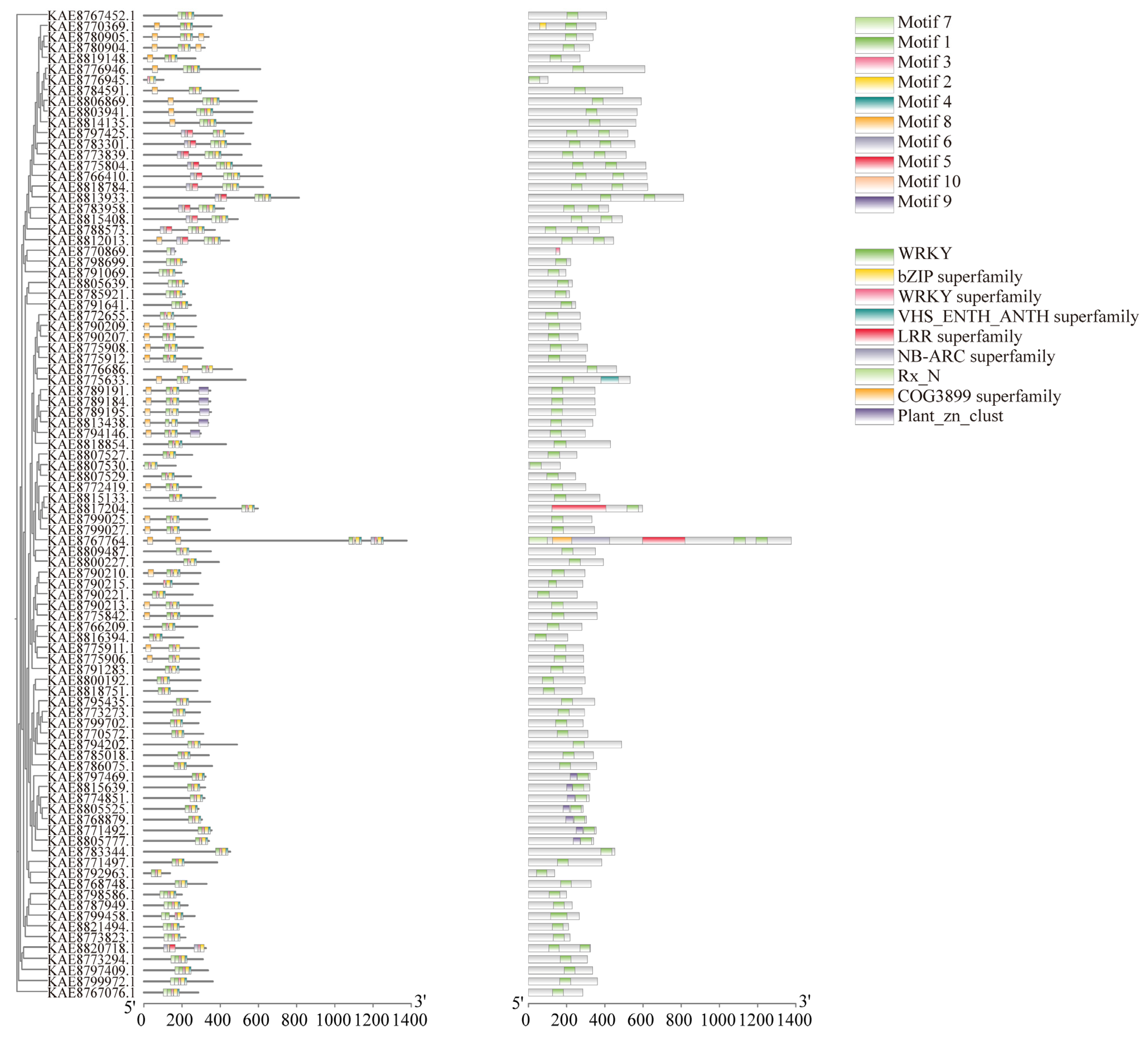 2.3. Conserved Motifs, Conserved Domains, and Gene Structure Analysis of Transcription Factor Family Genes