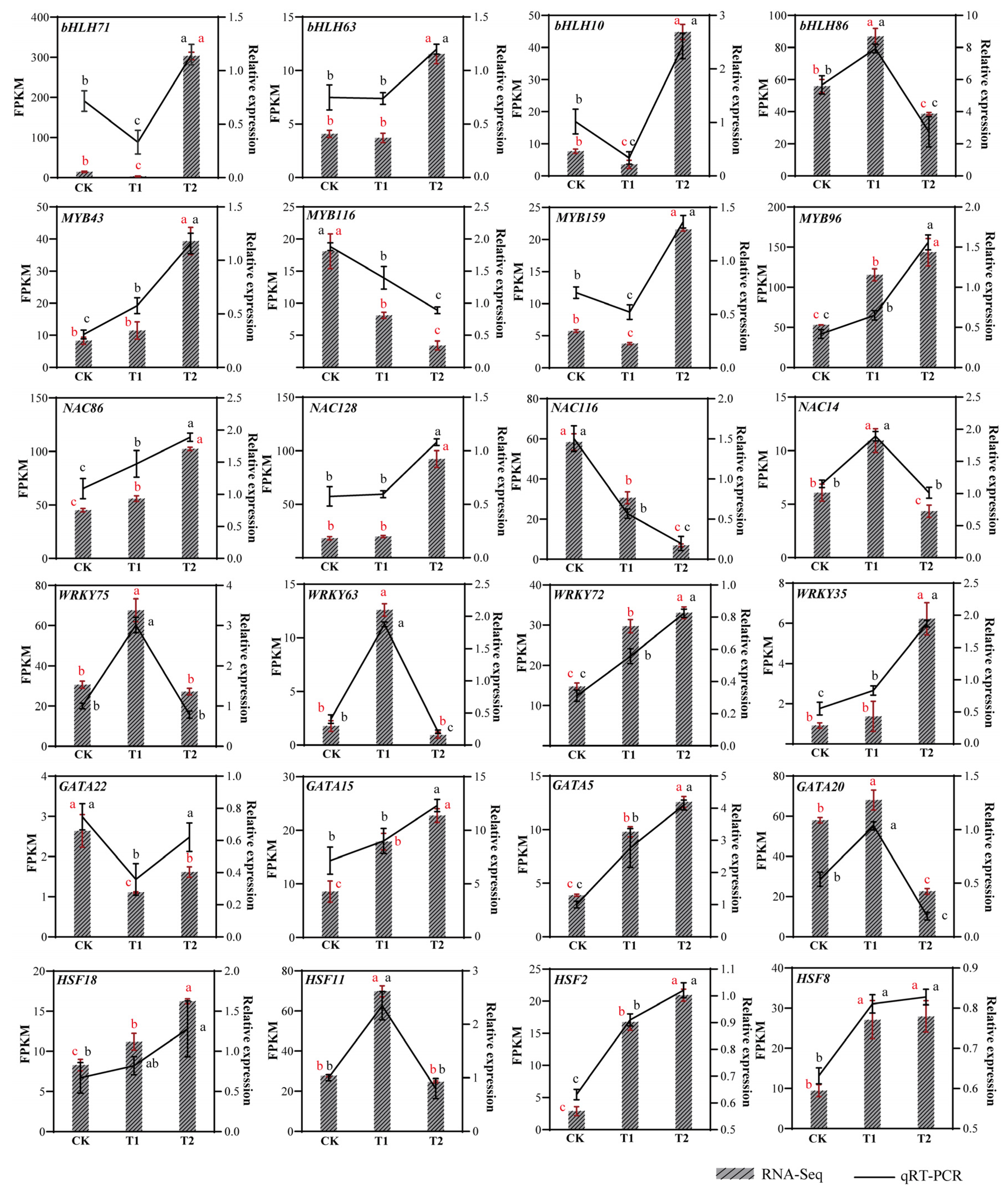 2.6. Expression Patterns of Transcription Factor Family Genes in Highland Barley