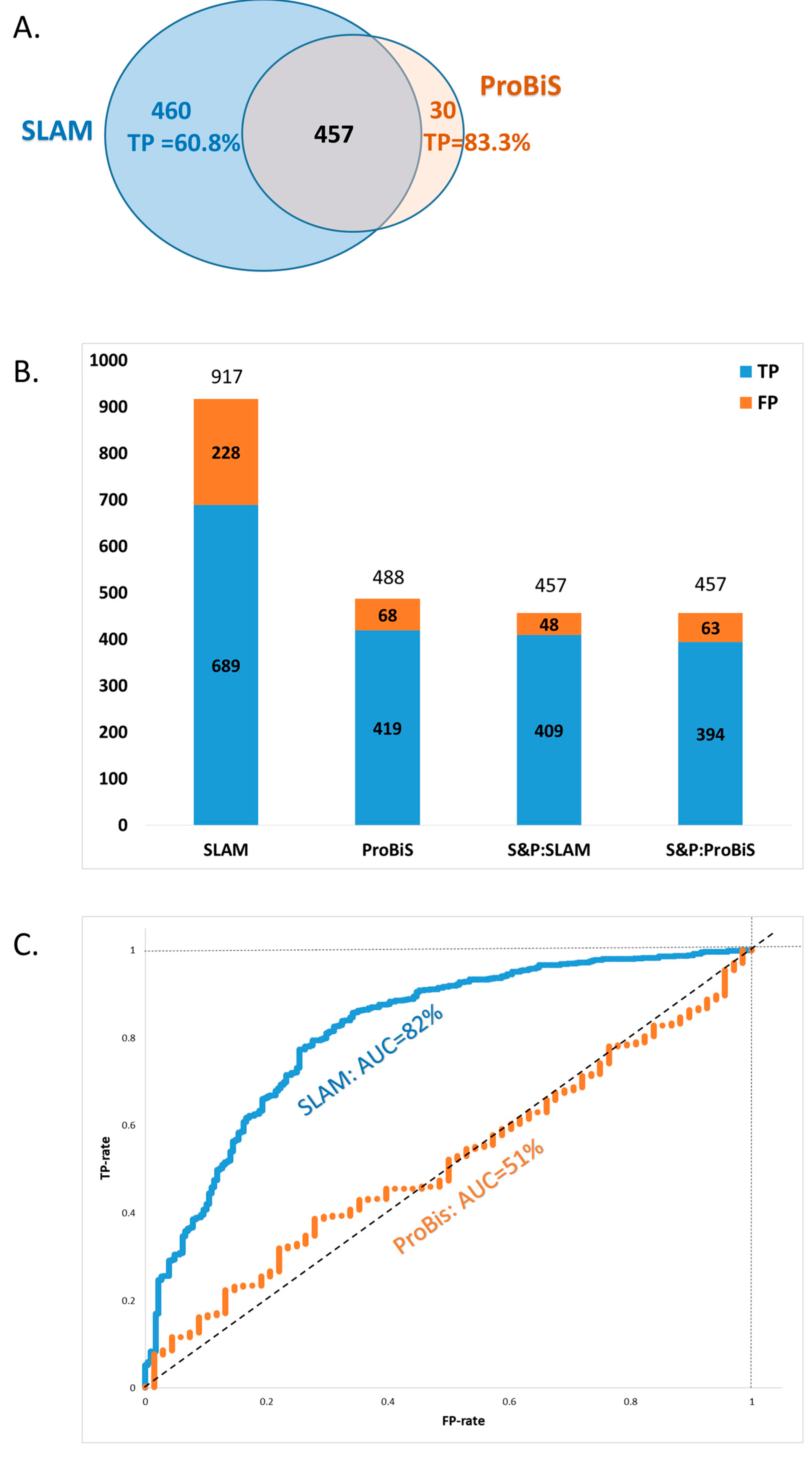 3.1. Comparison of SLAM and ProBiS Algorithms Based on Ligand-Containing Cavities in Target Proteins