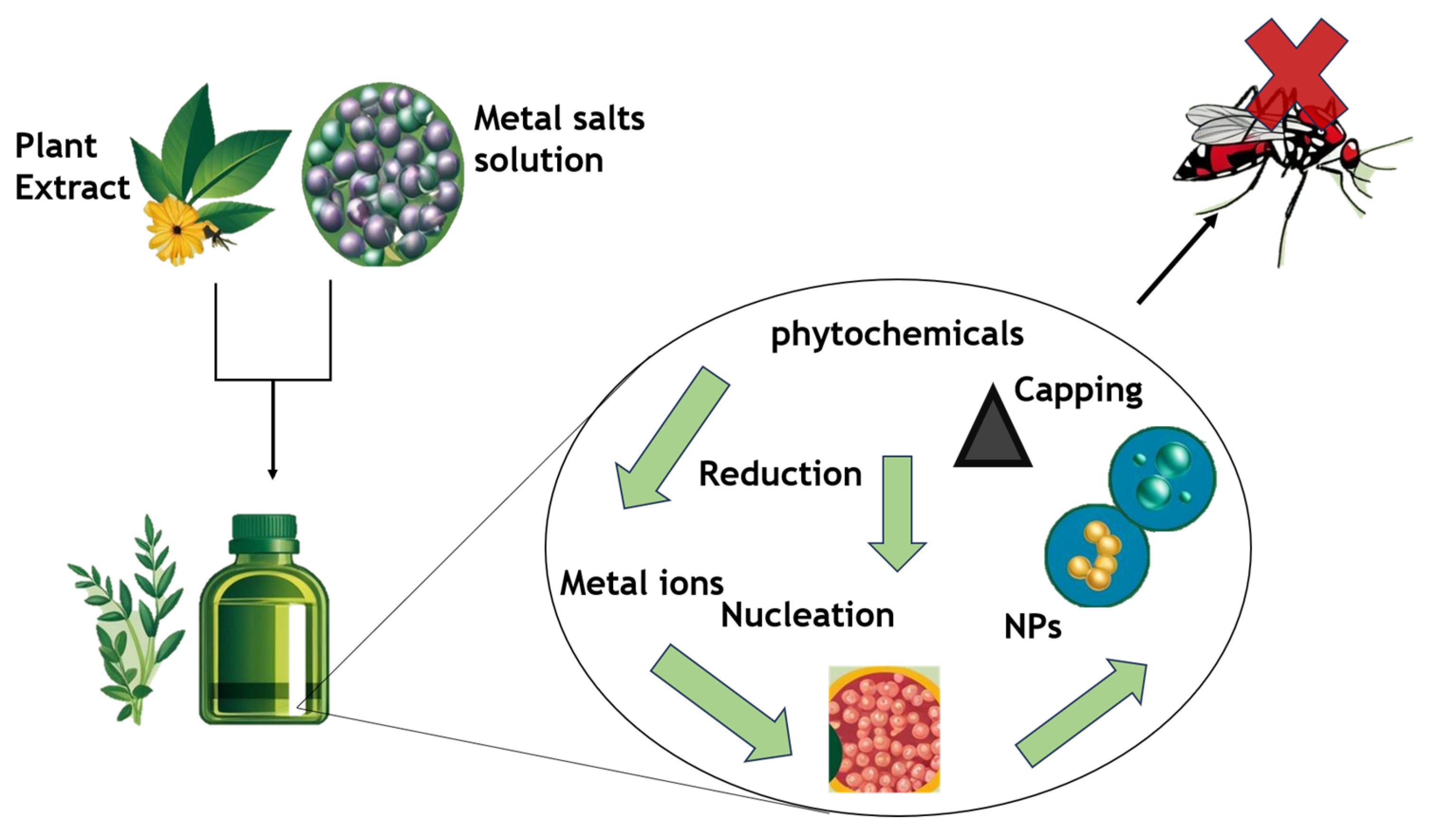 - Benelli, G. Green synthesized nanoparticles in the fight against mosquito-borne diseases and cancer—A brief review. Enzym. Microb. Technol. 2016, 95, 58–68. [Google Scholar] [CrossRef]