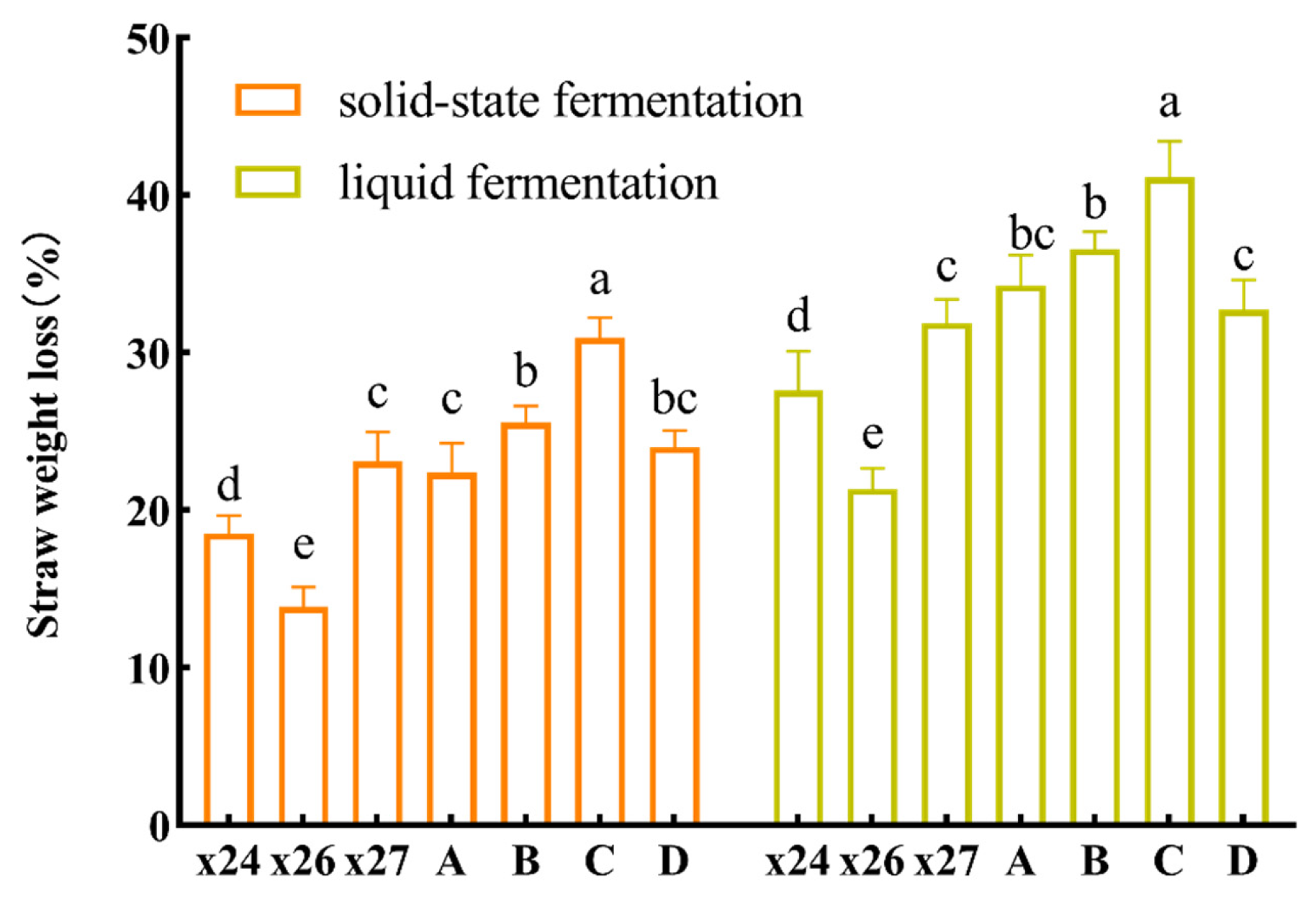 2.5.2. Solid-State Fermentation of Straw-Degrading Bacteria