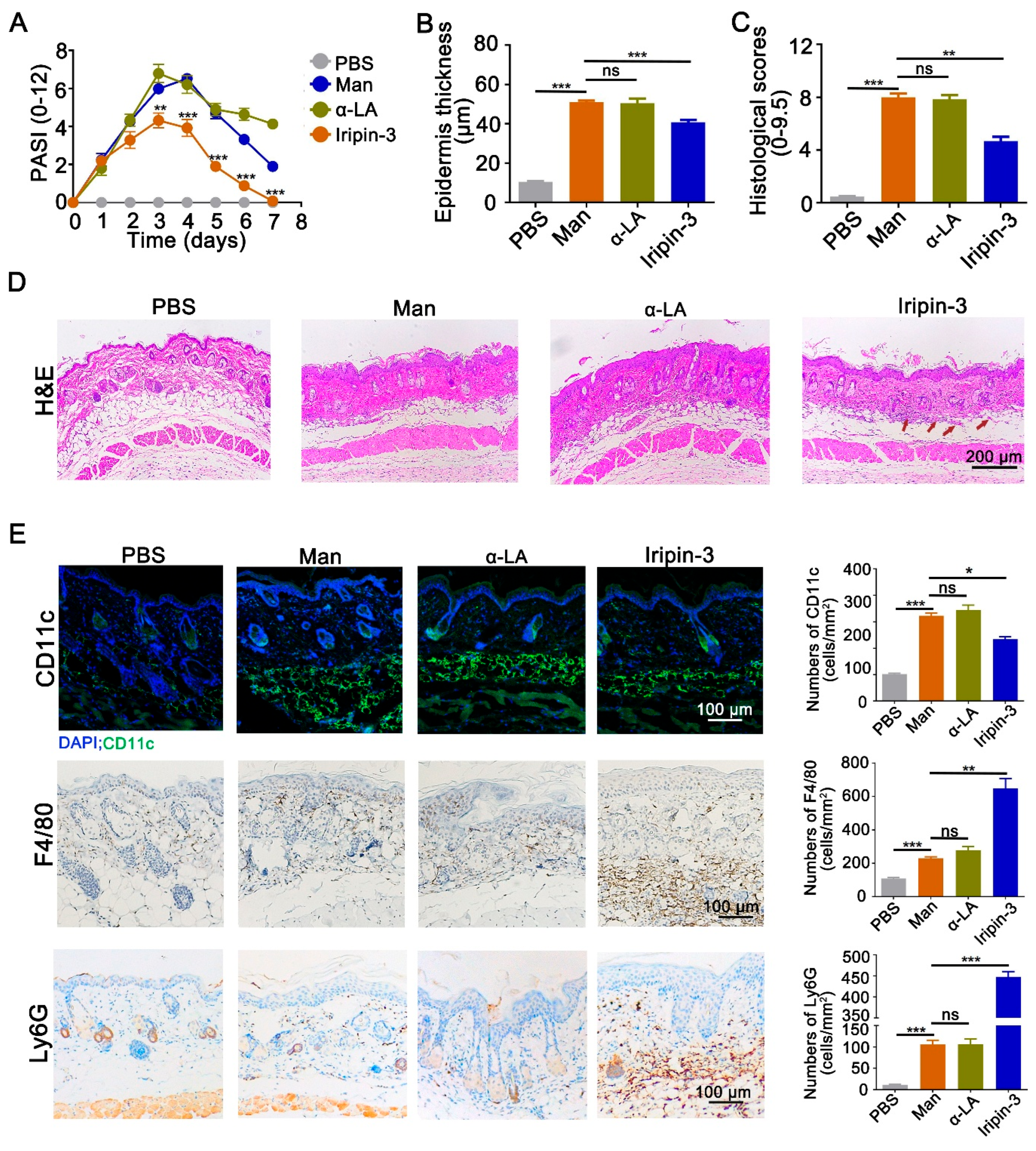3.1. Iripin-3 Decreases Mannan-Induced Psoriasis-like Inflammation