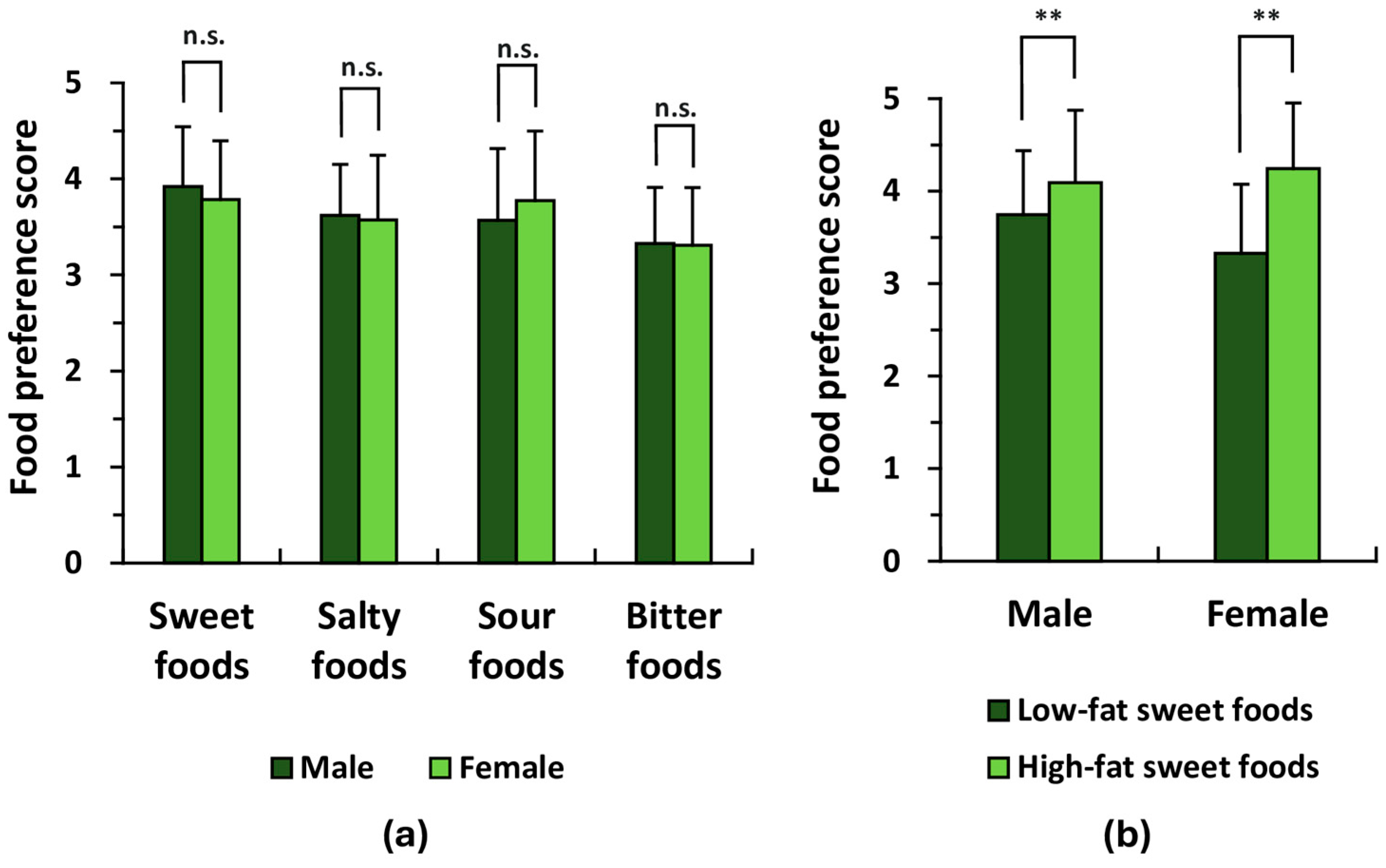 | Sour food | Japanese orange (Mikan) | 4.25 | 0.97 | 4.46 | 0.71 | 4.00 | 1.41 | n.s. | n.s. | n.s. | ||