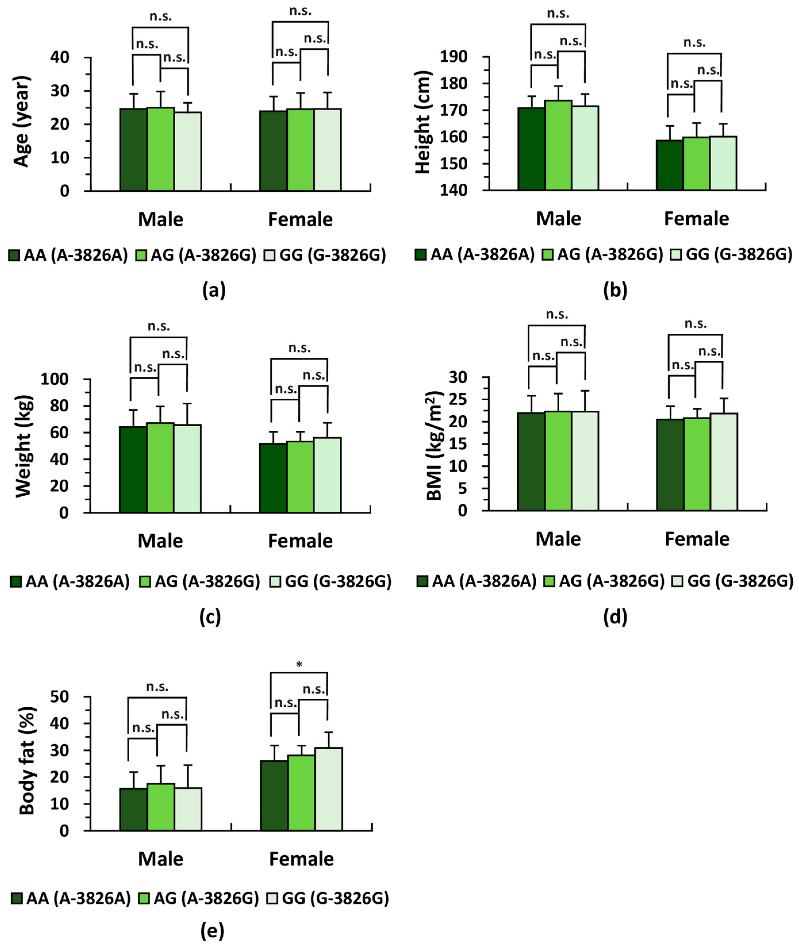 3.3. Genotype Frequencies of the UCP1 A-3826G Polymorphism in Each Sex Group