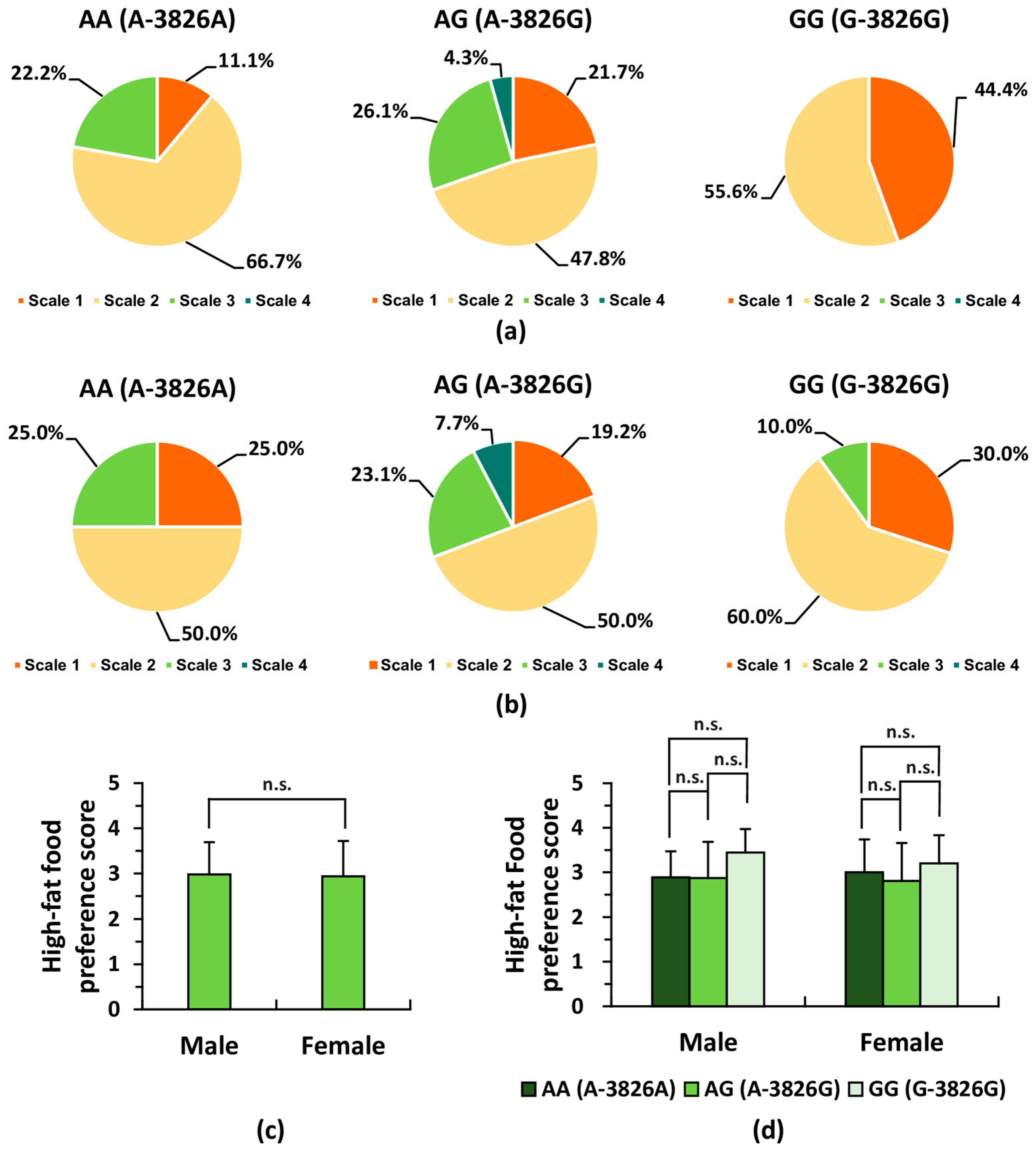 3.6. Preferences for Fatty Foods Across UCP1 Genotypes Within Each Sex Group
