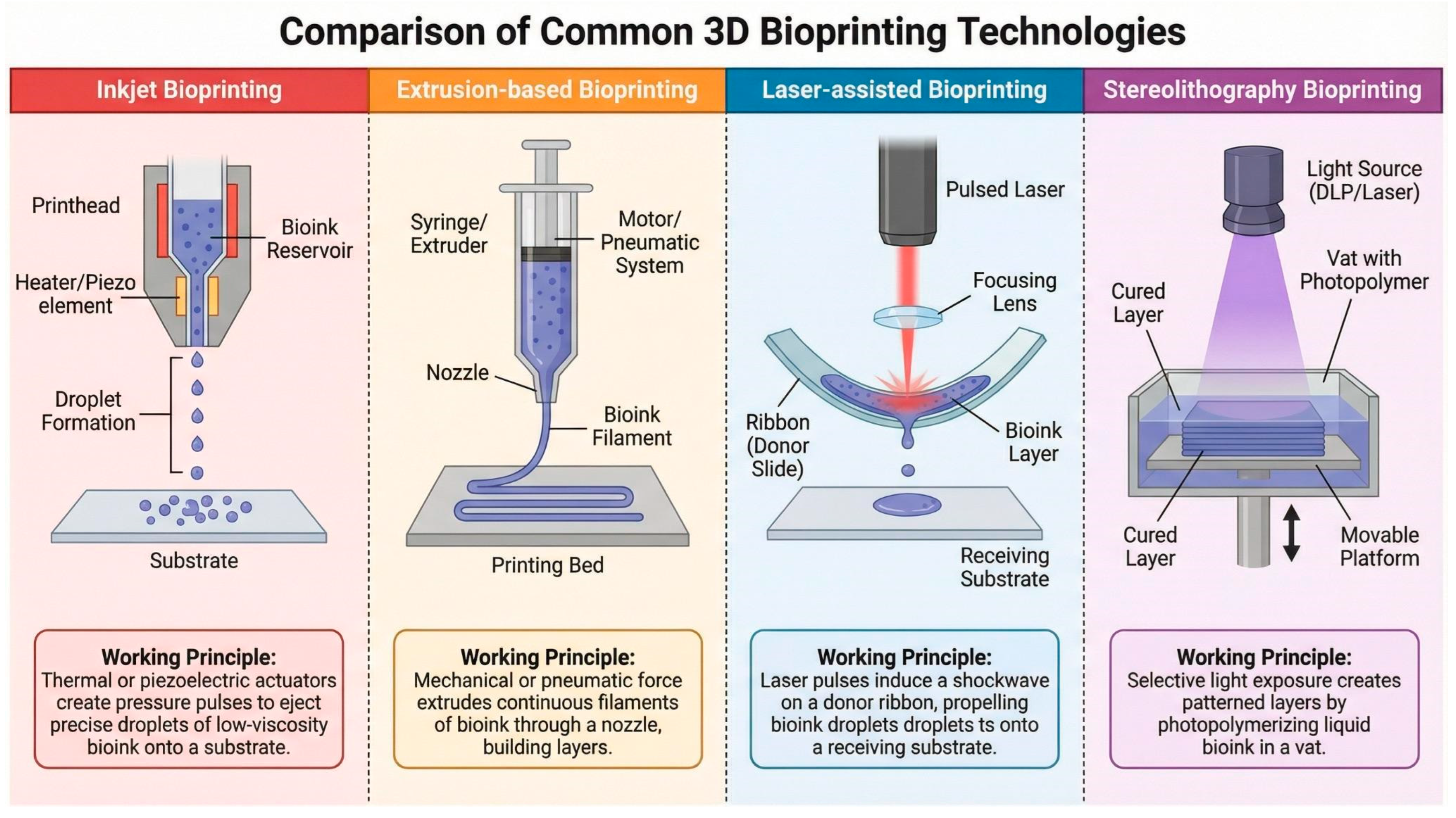 2.2. Bioprinting Technologies, Based on Application Mechanism