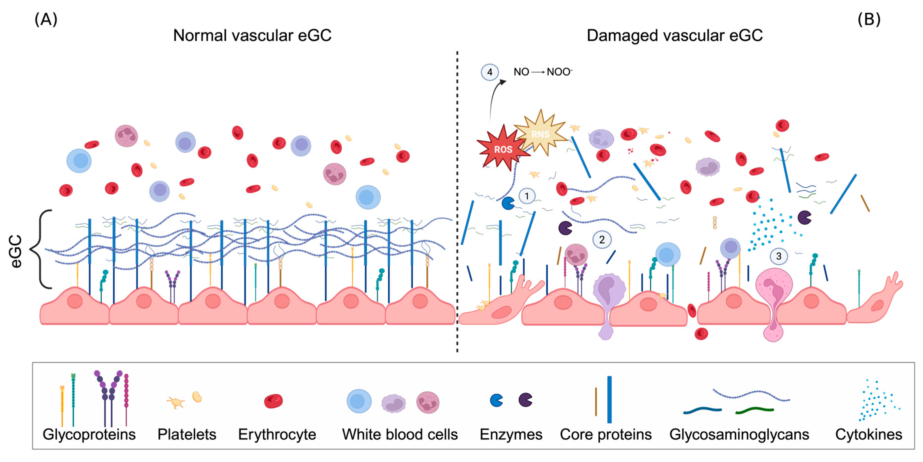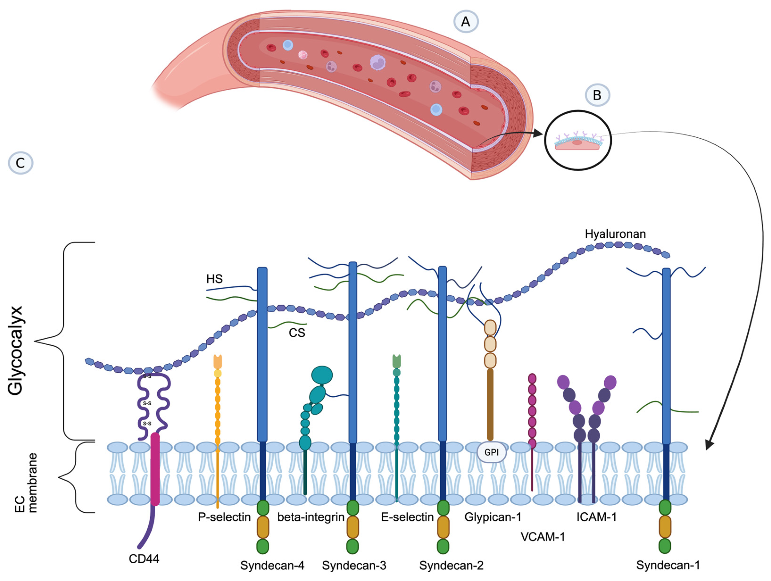- Moore, K.H.; Murphy, H.A.; George, E.M. The Glycocalyx: A Central Regulator of Vascular Function. Am. J. Physiol.-Regul. Integr. Comp. Physiol. 2021, 320, R508–R518. [Google Scholar] [CrossRef]