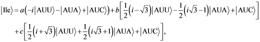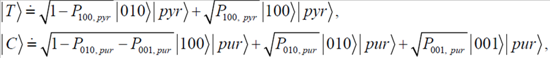 ) to denote that corresponding base is of pyrimidine (purine) type so that we can uniquely distinguished among different tautomeric forms. Strictly speaking, the probability amplitudes are complex numbers; however, from a quantum information theory point of view, the representation given above is sufficient.