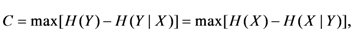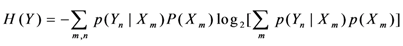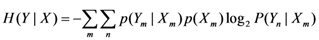 where H(Y) [H(X)] stands for the biological channel output (input) entropy, and H(Y|X) [H(X|Y)] represents the conditional entropy (or the equivocation) of biological channel output (input) given the biological channel input (output) X (Y). The entropy of biological channel output and conditional entropy are defined respectively as Equations 10 and 11.