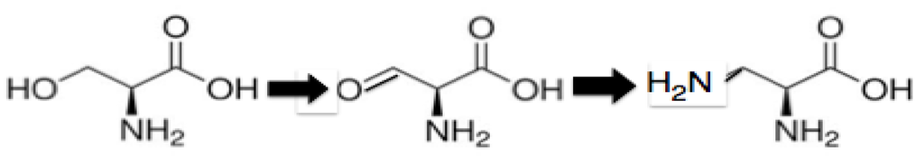 the conversion of serine to 2,3 diamino-L-propionic acid (Diapr).