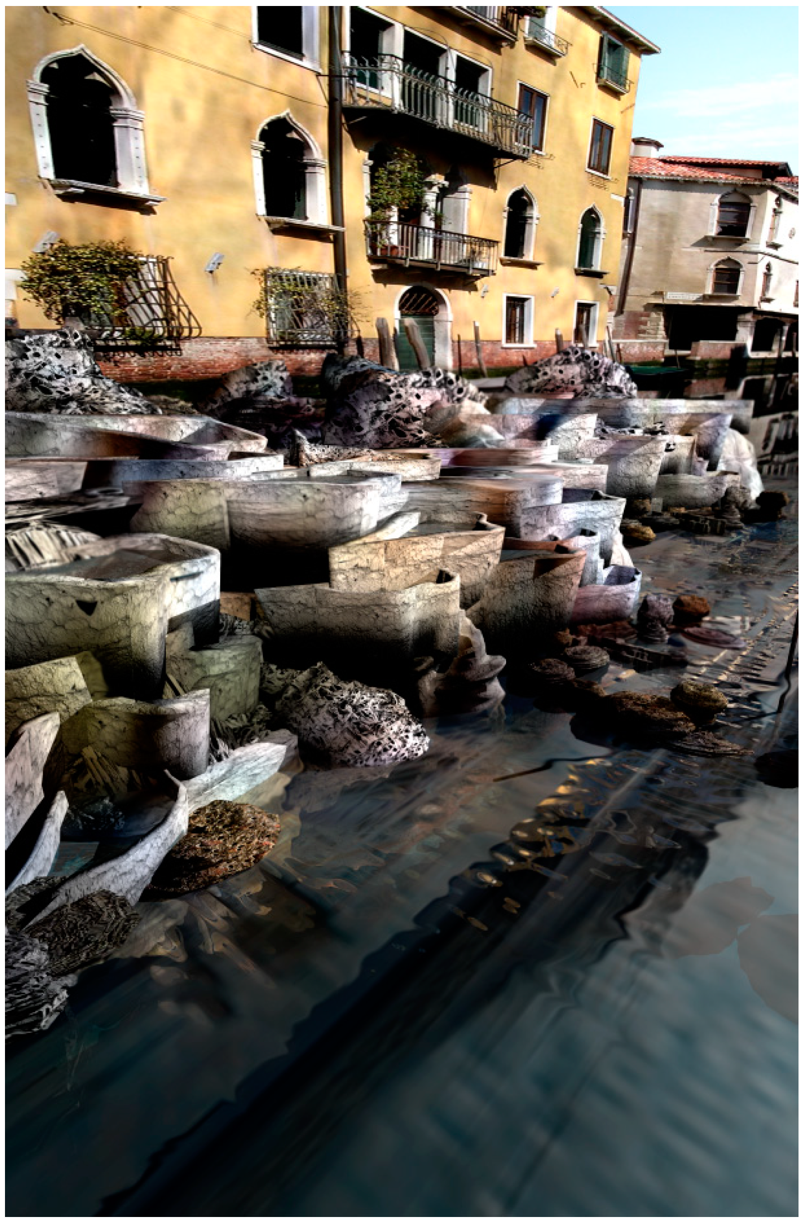 Indeed, chemical and biological assemblages may even be increasingly used in the production of traditional architectural materials by growing them, such as Philip Ross’ furniture produced by fungal roots [70] and Ginger Krieg Dosier’s “Bio-bricks”, which are made from bacterially fused sand particles [66] (p.113). In the near future these materials will be used on a larger scale and will double up as both material and technology taking the form of living construction systems. For example, Magnus Larsson’s architectural projects “Dune” proposes that a giant bacterial biofilm could function as an organic “printer” and potentially reverse desertification, by traveling through the desert and creating solid ground for the settlement of plants and other organisms [66] (pp. 62–65).