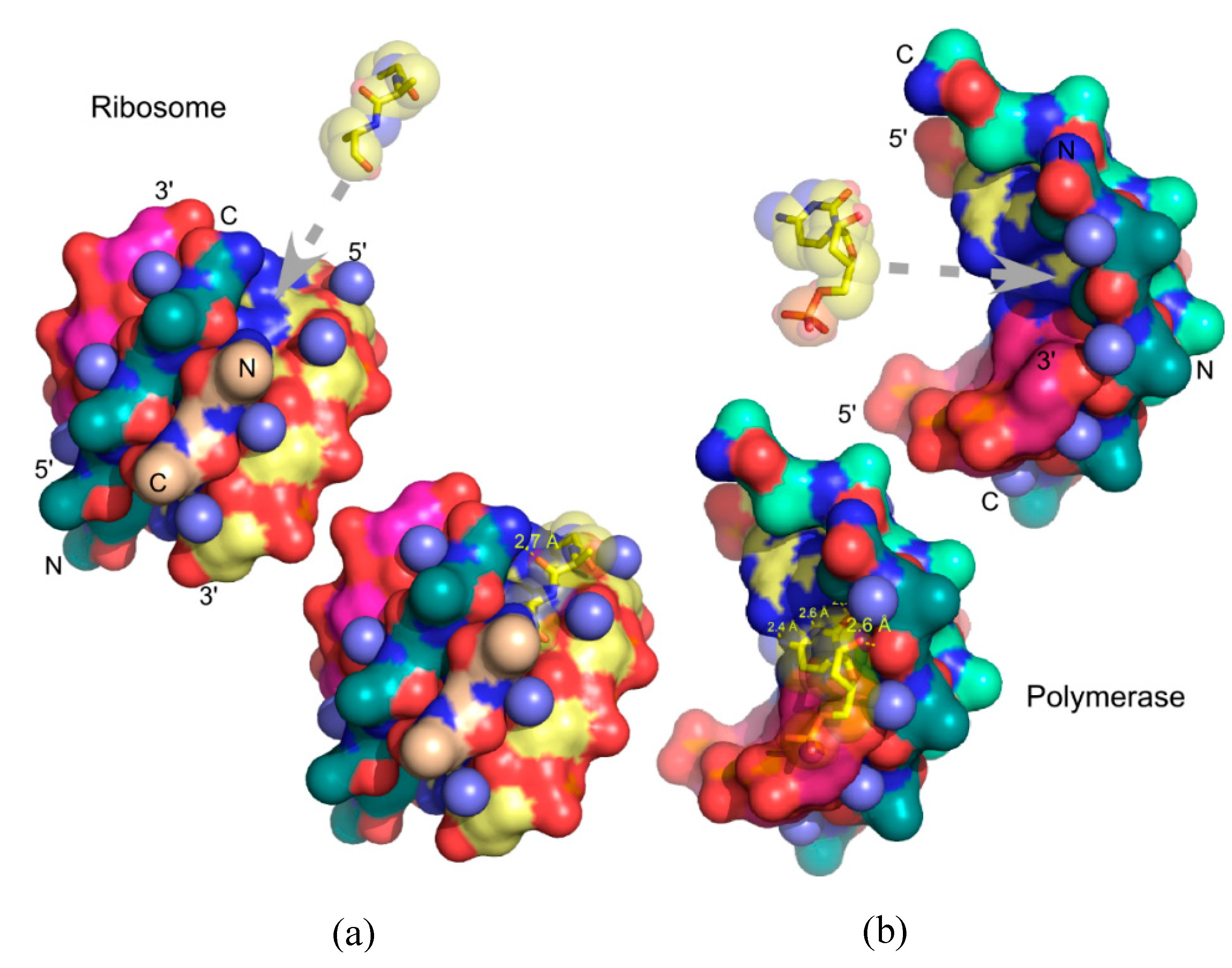 - Schroeder, G.K.; Wolfenden, R. The Rate Enhancement Produced by the Ribosome: An Improved Model. Biochemisty 2007, 46, 4037–4044. [Google Scholar] [CrossRef]