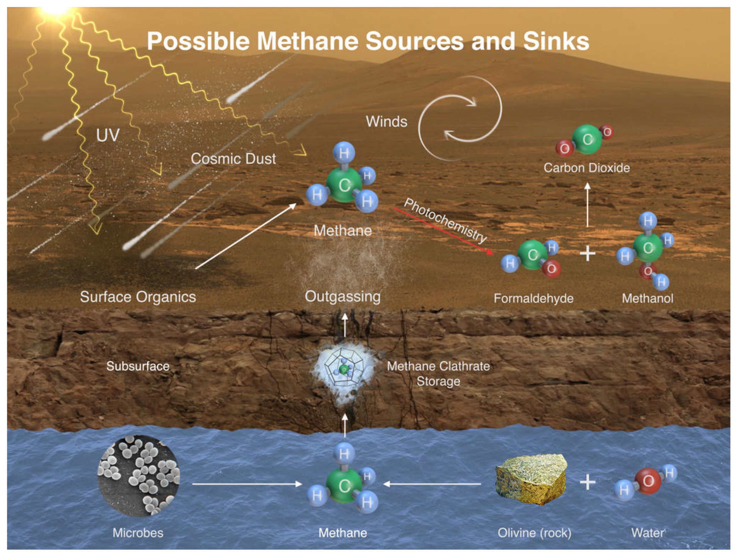 - The potential CH4 signal was in fact coming from CO2 ice.