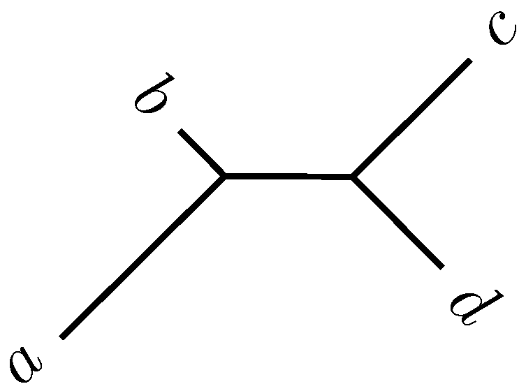 Consider four taxa, , connected by an unrooted phylogeny (Figure 2). Their pairwise distances are given as . The topology shown in Figure 2 is correct if a is most closely related to b and c to d. This condition is known more formally as the four-point criterion: