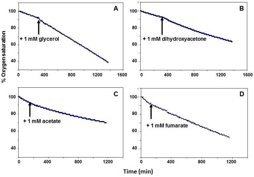 - The oxygen uptake rate was significantly inhibited (up to 50%) following the addition of 1 mM fumarate.