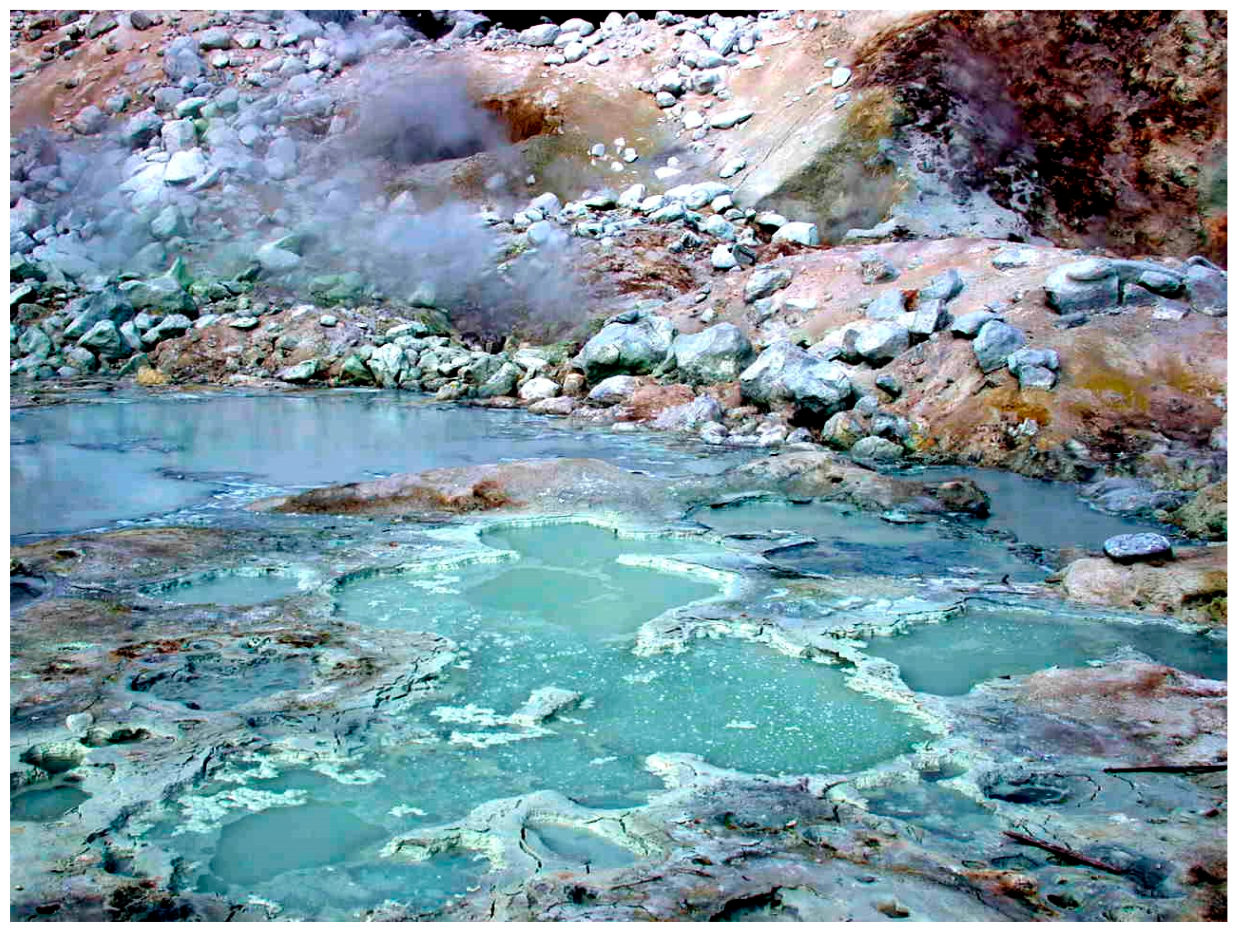 - Kompanichenko, V.N.; Poturay, V.A.; Karpov, G.A. Organic compounds in thermal water of Mutnovsky field and Uzon caldera. J. Volcanol. Seismol. 2016, in press. [Google Scholar] [CrossRef]